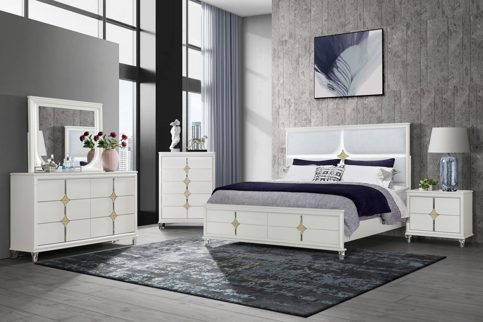 With a design that mirrors the sophistication of the entire collection, the Orion Chest offers storage for all your essentials. The textured drawer fronts and hidden pulls maintain a clean, modern look, while the gold accents and acrylic legs provide a chic finish.