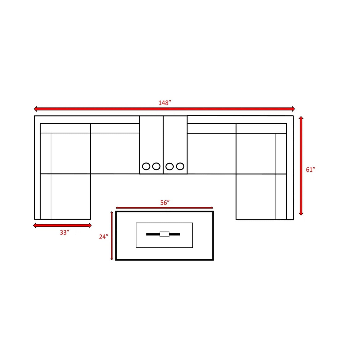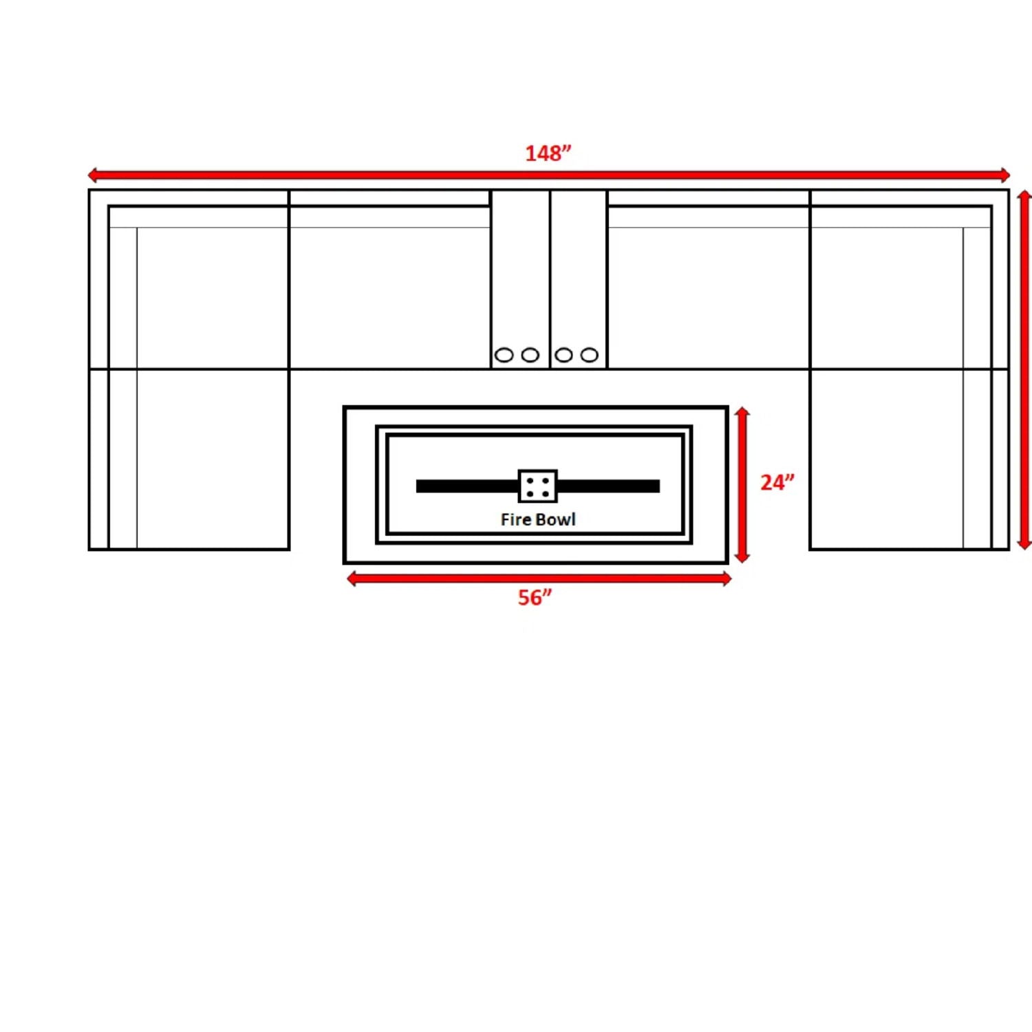 9 Piece Modular Seating Group With Ultra Soft Cushions & Concrete Fire Pit - Espresso
