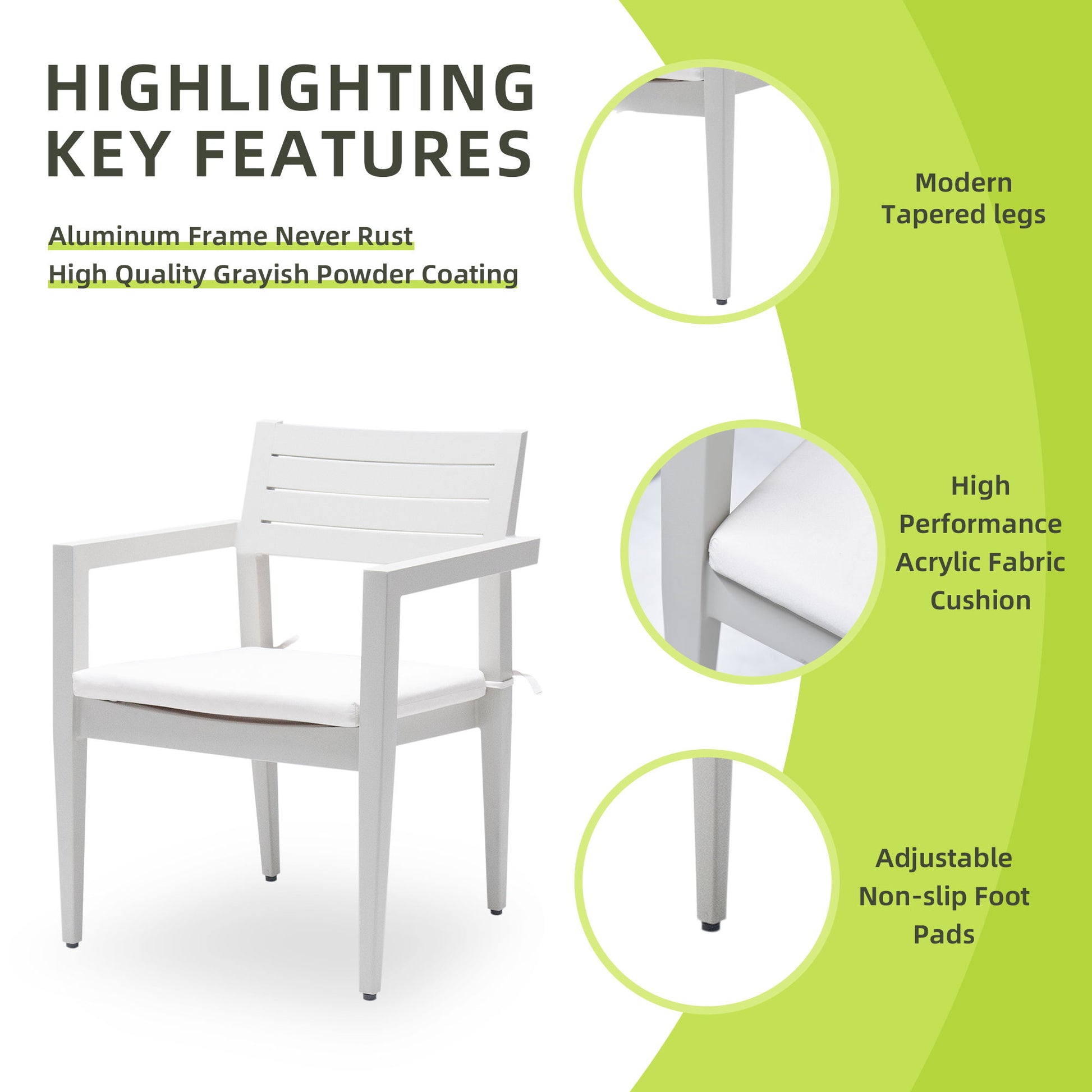 • Modern Tapered Legs: Sleek, tapered aluminum legs offer a modern edge while ensuring enhanced stability and strength.