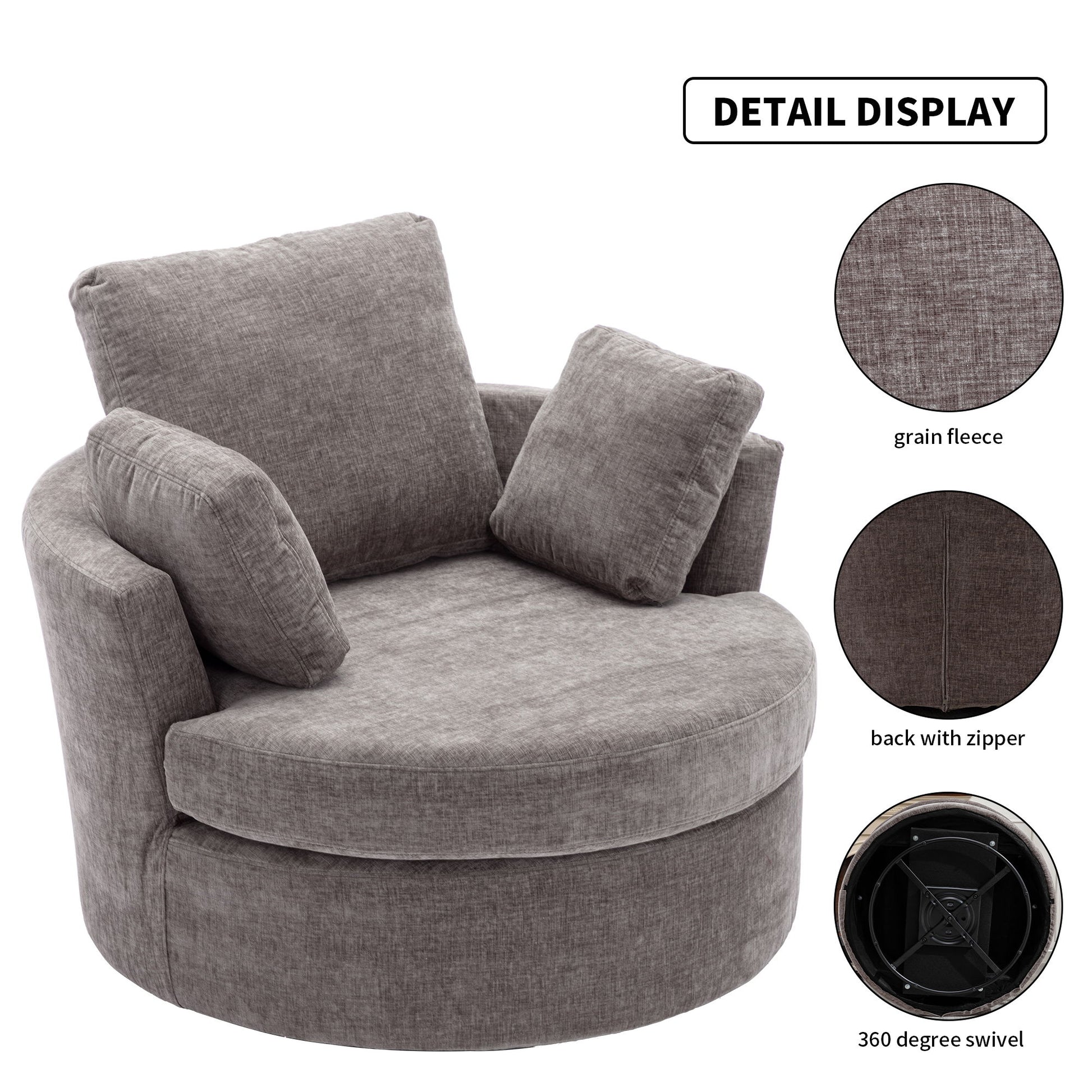 Oversize Round Swivel Chair Cozy Club 360 Degrees Swivel Sofa With 3 Pillows Chenille Fabric For Living Room Lounge Hotel - Gray