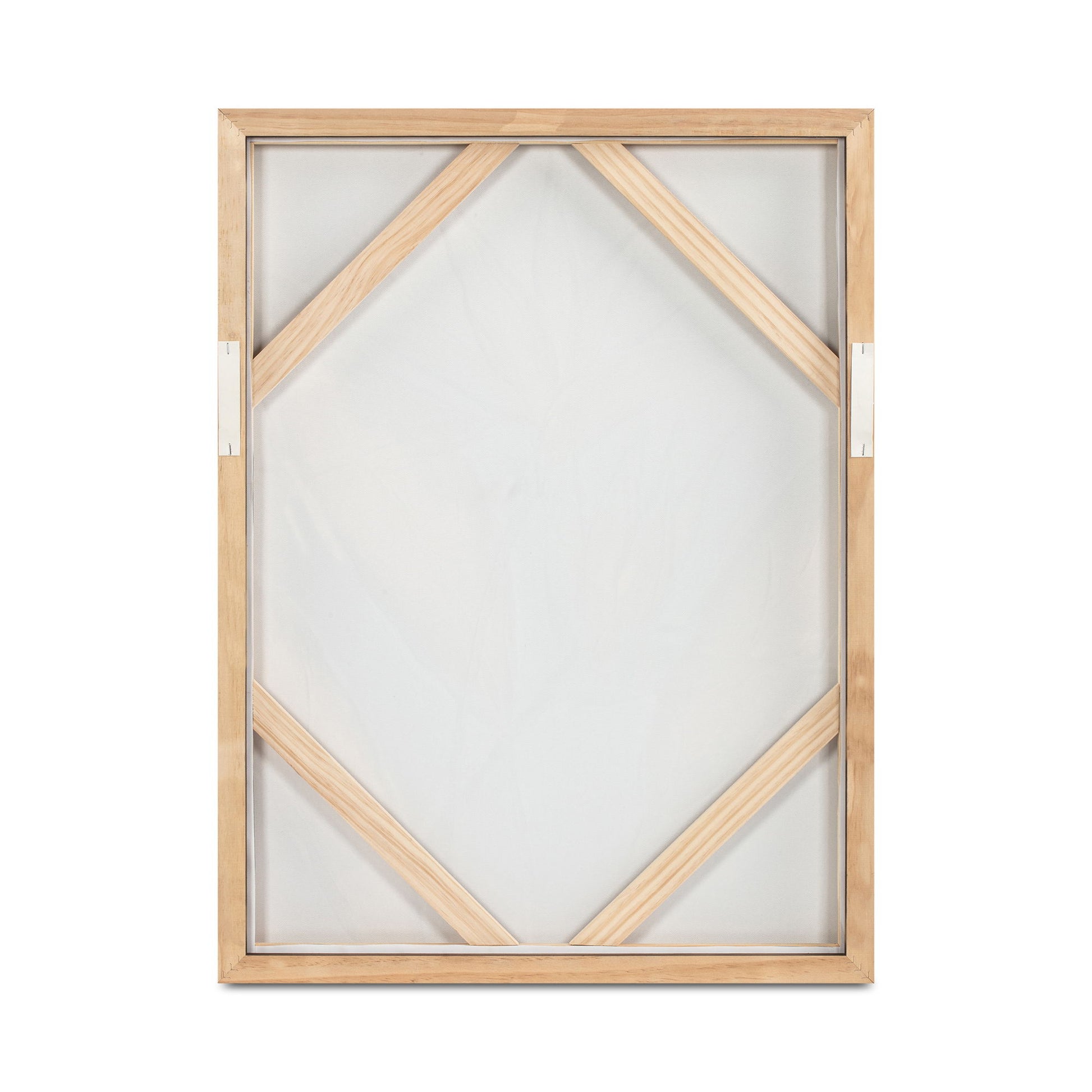 The Paradis framed painting captures the vibrant essence of the bird of paradise flower through its expressive shape and bold angular form. Set against a solid, rich blue background, the artwork's textured paintwork creates a striking inverse silhouette, where bright light plays the defining role instead of dark shadow.
