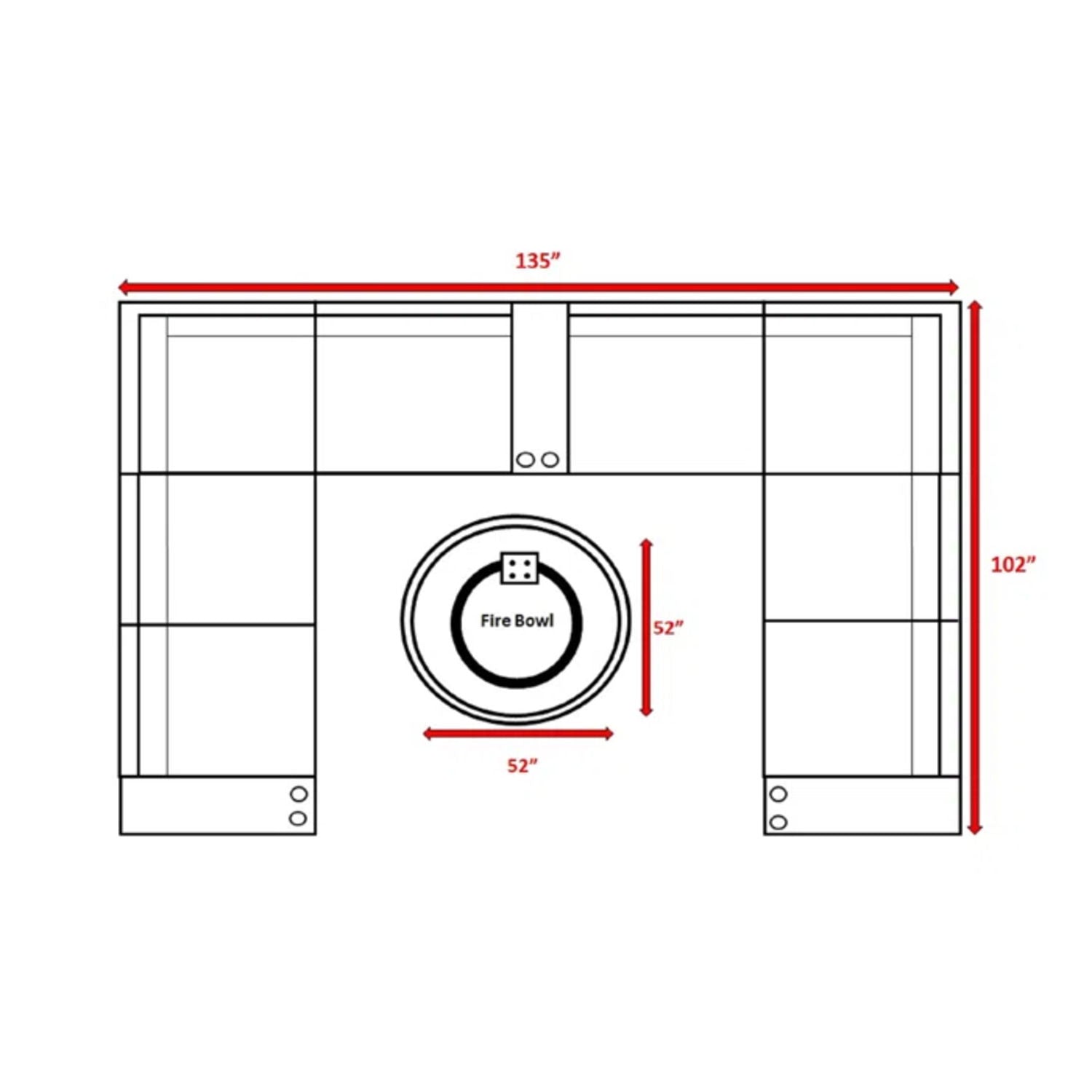 • Complete Outdoor Set: 12-piece group includes 2 modular sectionals, 1 sofa, fire pit, and 18 thick cushions.
