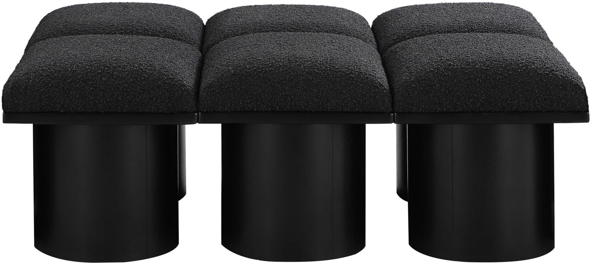 Bring valuable seating and remarkable style to your space with this Pavilion Boucle Fabric Bench, an exquisite balance of style and usability for the entryway, bedroom, and beyond. Crafted from oak veneer with a black finish, this bench has a 4-inch-thick seat cushion that's channel-tufted for a touch of luxury. The bench's columnar bases add a dash of Art Deco design, making it a captivating focal point in any room.