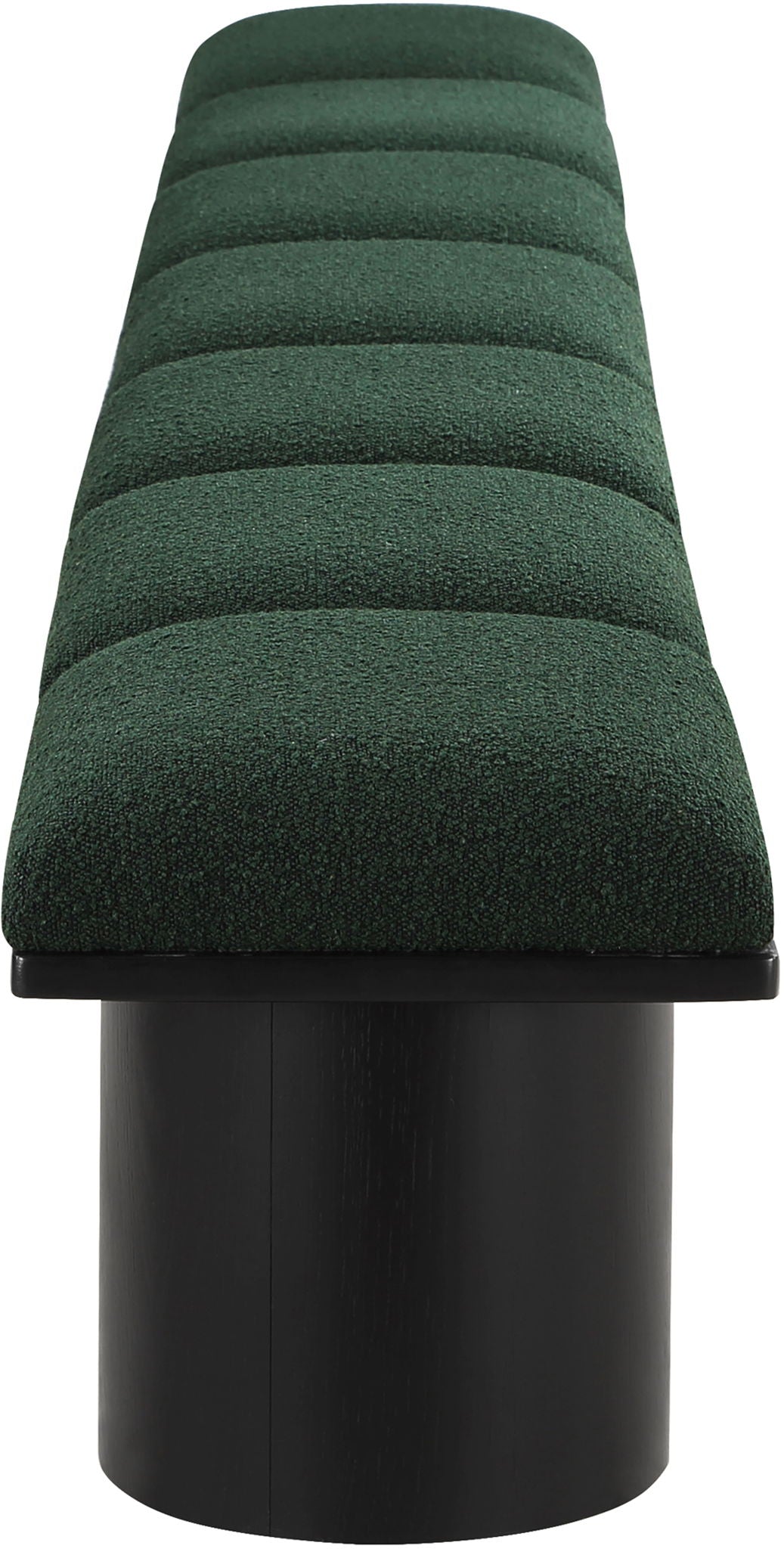 Bring valuable seating and remarkable style to your space with this Pavilion Boucle Fabric Bench, an exquisite balance of style and usability for the entryway, bedroom, and beyond. Crafted from oak veneer with a black finish, this bench has a 4-inch-thick seat cushion that's channel-tufted for a touch of luxury. The bench's columnar bases add a dash of Art Deco design, making it a captivating focal point in any room.