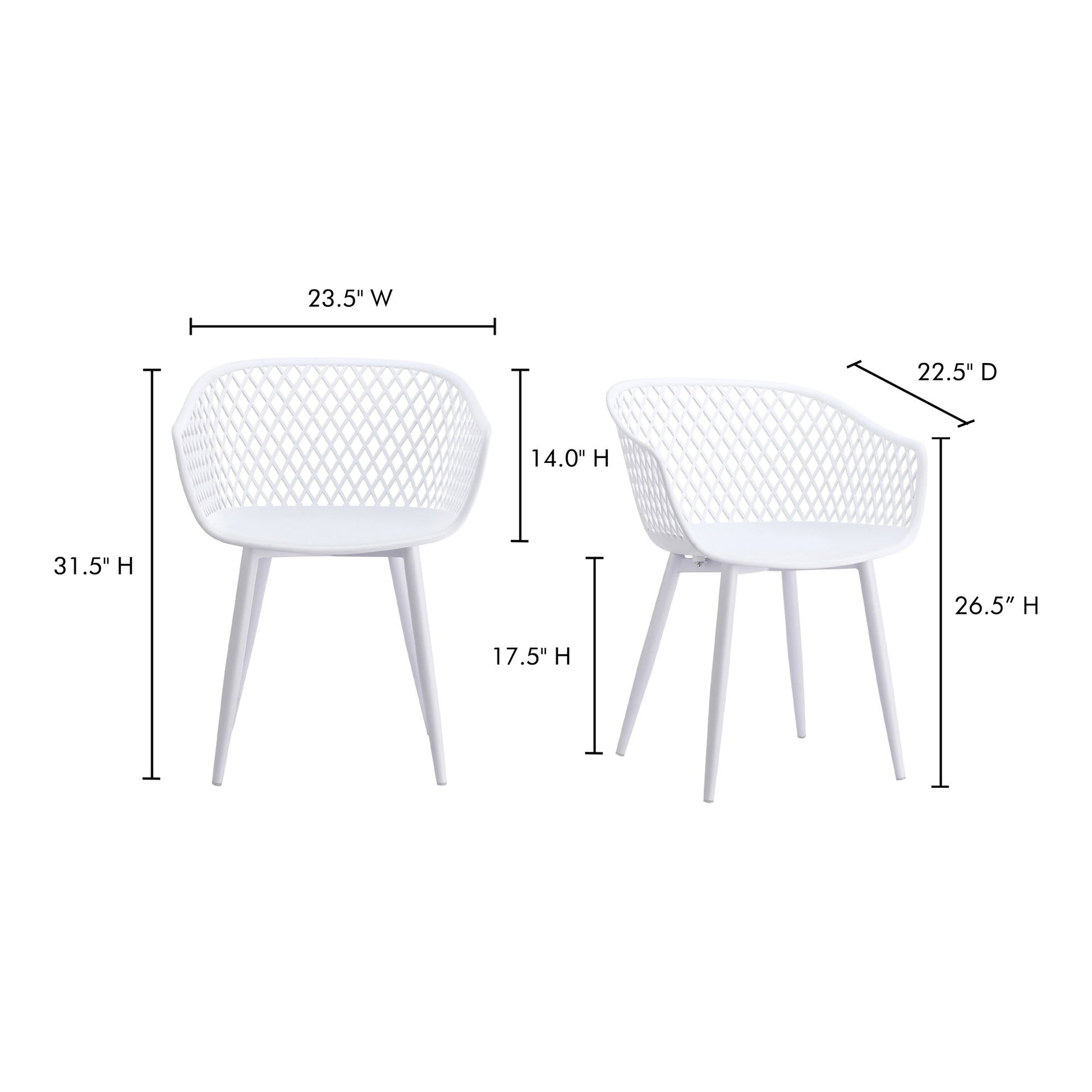 Take a seat in the stylish and comfortable Piazza Chair. Made with a durable polypropylene, this chair comes in several colors that will be sure to complement your outdoor design with its whicker backing and powder coated metal legs. The perfect addition to any table or as extra seating for guests.