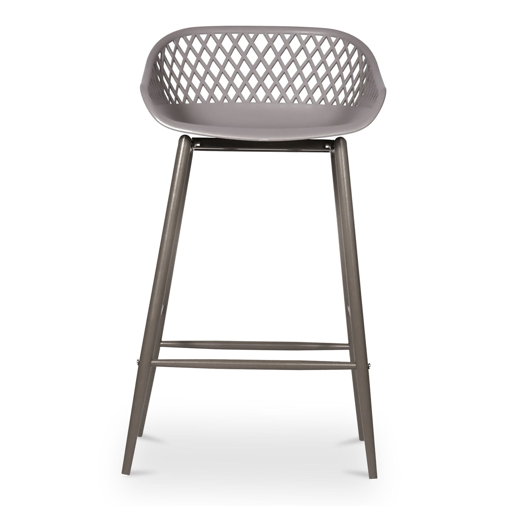 Patio perfection. With a curved seat, the Piazza counter stool is like a basket of comfort for summertime bliss. A diamond mesh back made with durable polypropylene and sleek tapered legs provide this stool’s contemporary charisma, while a built-in footrest keeps things breezy. Available in two colors, pair this counter stool with others from the Piazza collection for a true outdoor oasis.