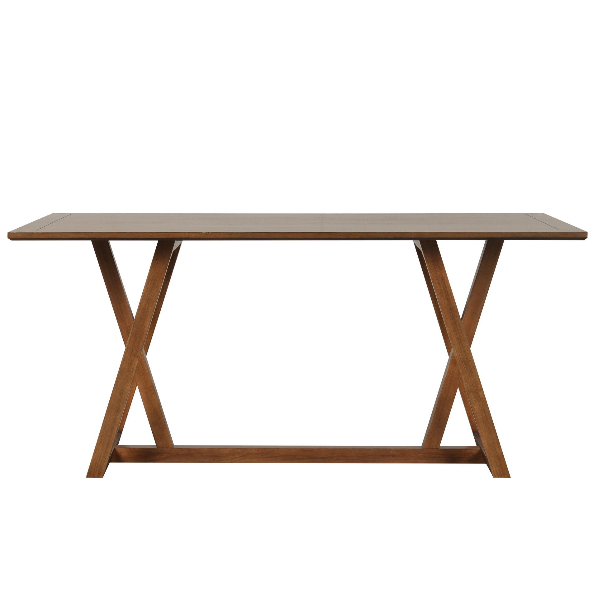 The Putnam Counter Table in Walnut is a masterful blend of quality and design, making it an ideal centerpiece for any dining area. This counter dining table, crafted from solid rubberwood, manufactured woods, and acacia wood veneers, ensures long-lasting stability and durability. The warm walnut finish, achieved through a meticulous multi-step process, enhances the natural beauty and grain patterns of the wood. The table's modern design incorporates mid-century elements, featuring clean lines and a simple rectangular shape. The uniquely shaped legs add a geometric flair, seamlessly blending modern and mid-century aesthetics. With a length of 78 inches, this table comfortably seats up to six people, making it perfect for family gatherings and entertaining guests. Invest in the Putnam Counter Table for a blend of style, function, and enduring quality in your home.