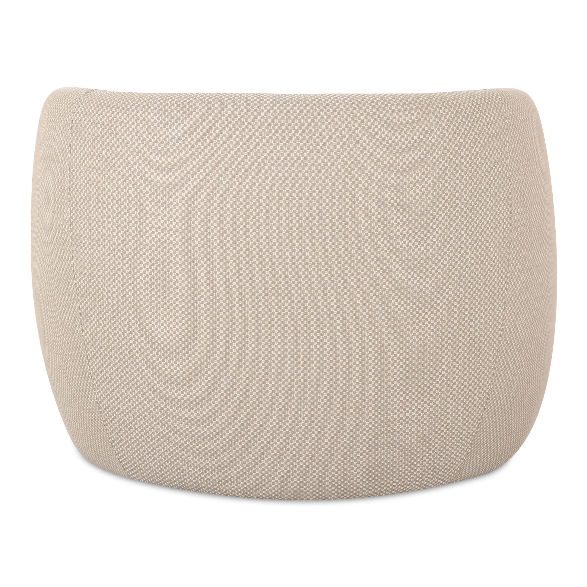 The Rae accent chair's rounded silhouette and gently curved back match style with comfort. Fully upholstered in an all-weather, water-resistant fabric, it ensures durability without compromising aesthetic appeal, embracing the outdoors with indoor refinement.