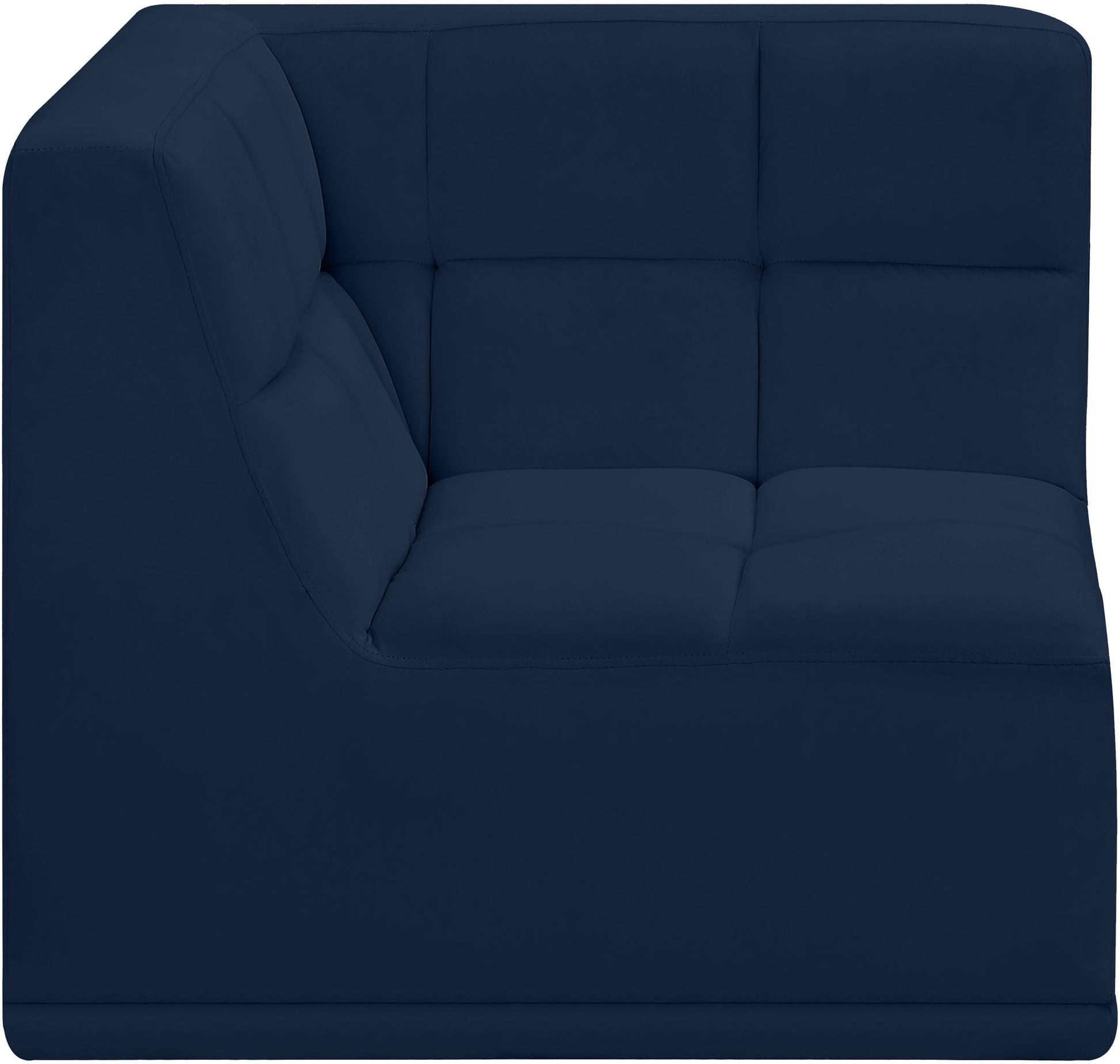 Bolster a contemporary vibe in your living room with this Relax velvet corner chair. Soft black velvet upholstery offers delicate comfort, making this chair cozy for anyone who sits in it. Biscuit tufting gives this chair texture and a modern style, adding extra comfort and elegance to your living space. It s modular design allows you to create infinite configurations, making it a versatile piece to add to your home. A latch underneath the chair makes it easy to attach to other pieces.