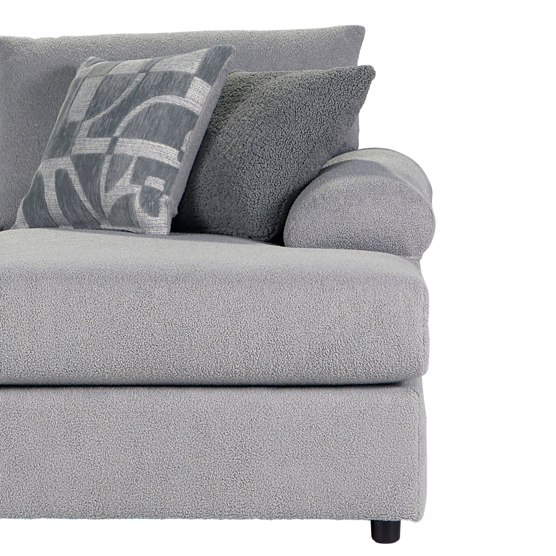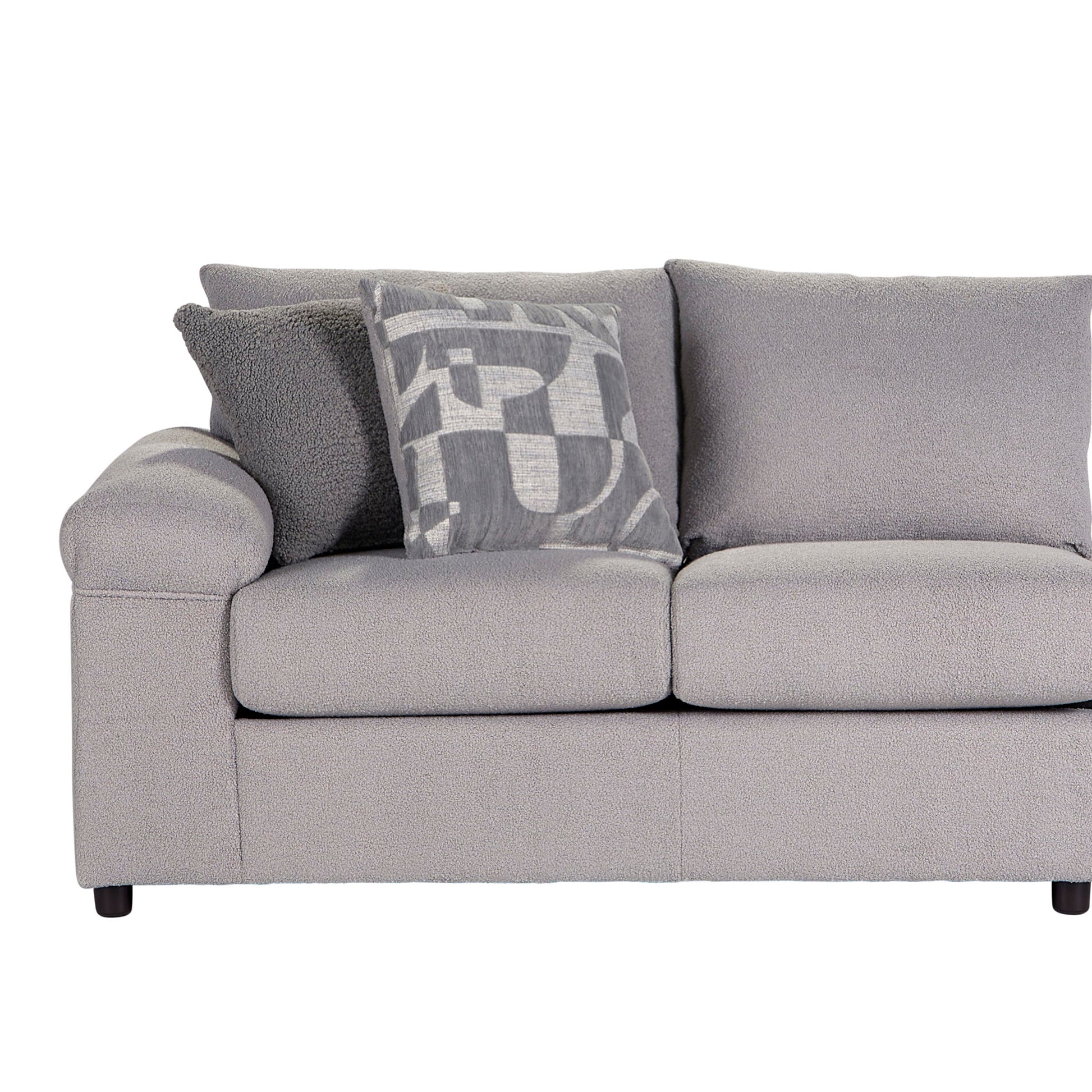 Introducing the Remi 2 Pc. Chaise Section in a sophisticated addition to your living space. This sectional includes a roomy Chaise Lounge and a Loveseat that seats three, accompanied by four coordinating accent pillows for added flair. Made in the USA and crafted with solid and manufactured wood frames reinforced with corner blocks, this sectional promises long-term durability and strength. The cozy 100% polyester upholstery is both easy to care for and meticulously tailored. Sink into comfort with 1.9 density, 4" thick seat cushions wrapped in Dacron for a plush and supportive seating surface, while sinuous springs provide additional resiliency. With its transitional style featuring clean square arms and stylish fabric selections, the Remi sectional effortlessly complements any décor, offering both style and comfort in one elegant package.