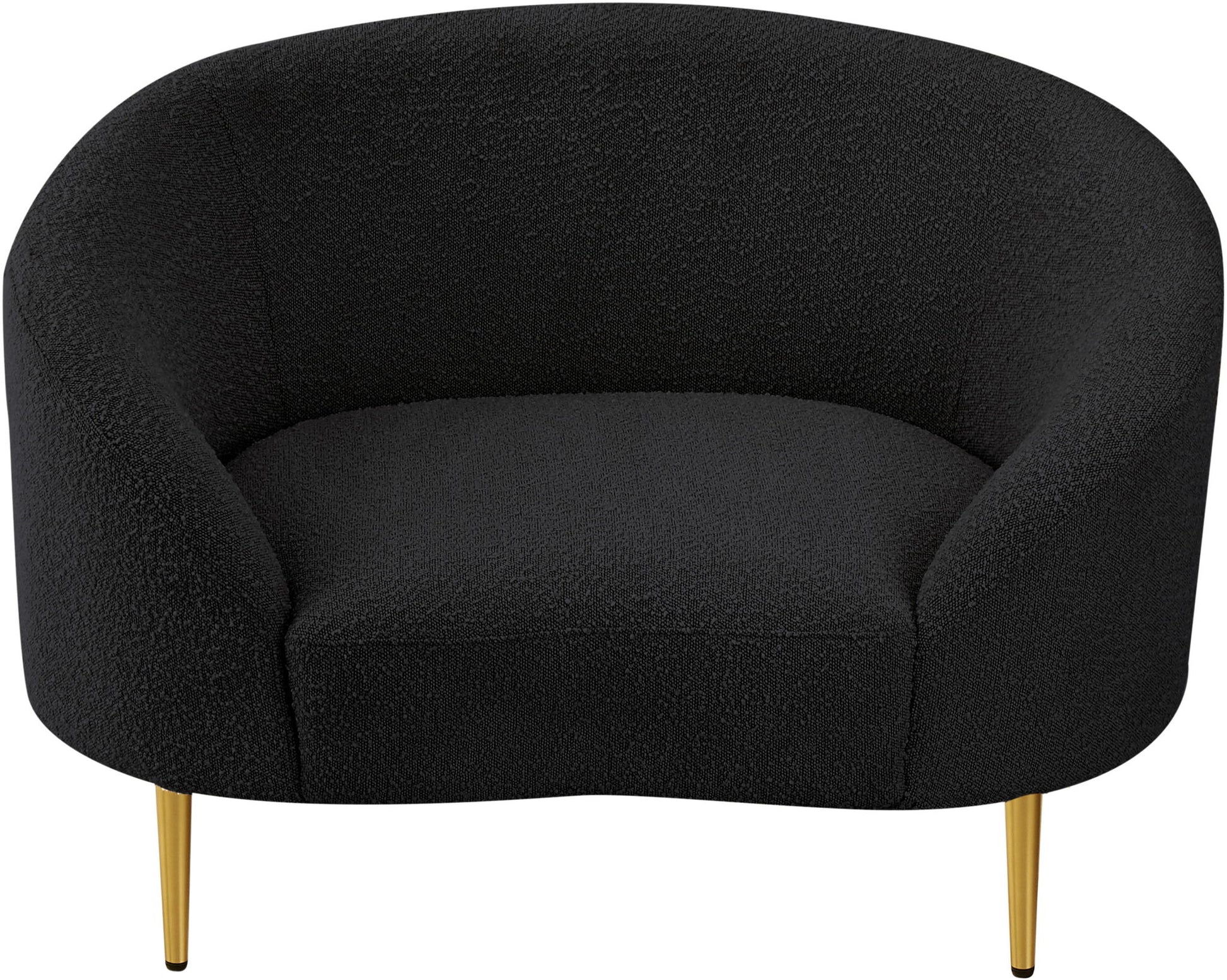 Impress family and guests alike with this Ritz Boucle Fabric Chair. Wrapped in a cozy boucle fabric, this chair exudes elegance and comfort. The gold metal legs add a touch of glamour to the overall design, making it a perfect addition to any modern living space. Sit back, unwind, and sink into the plush cushions of this chic and stylish chair.