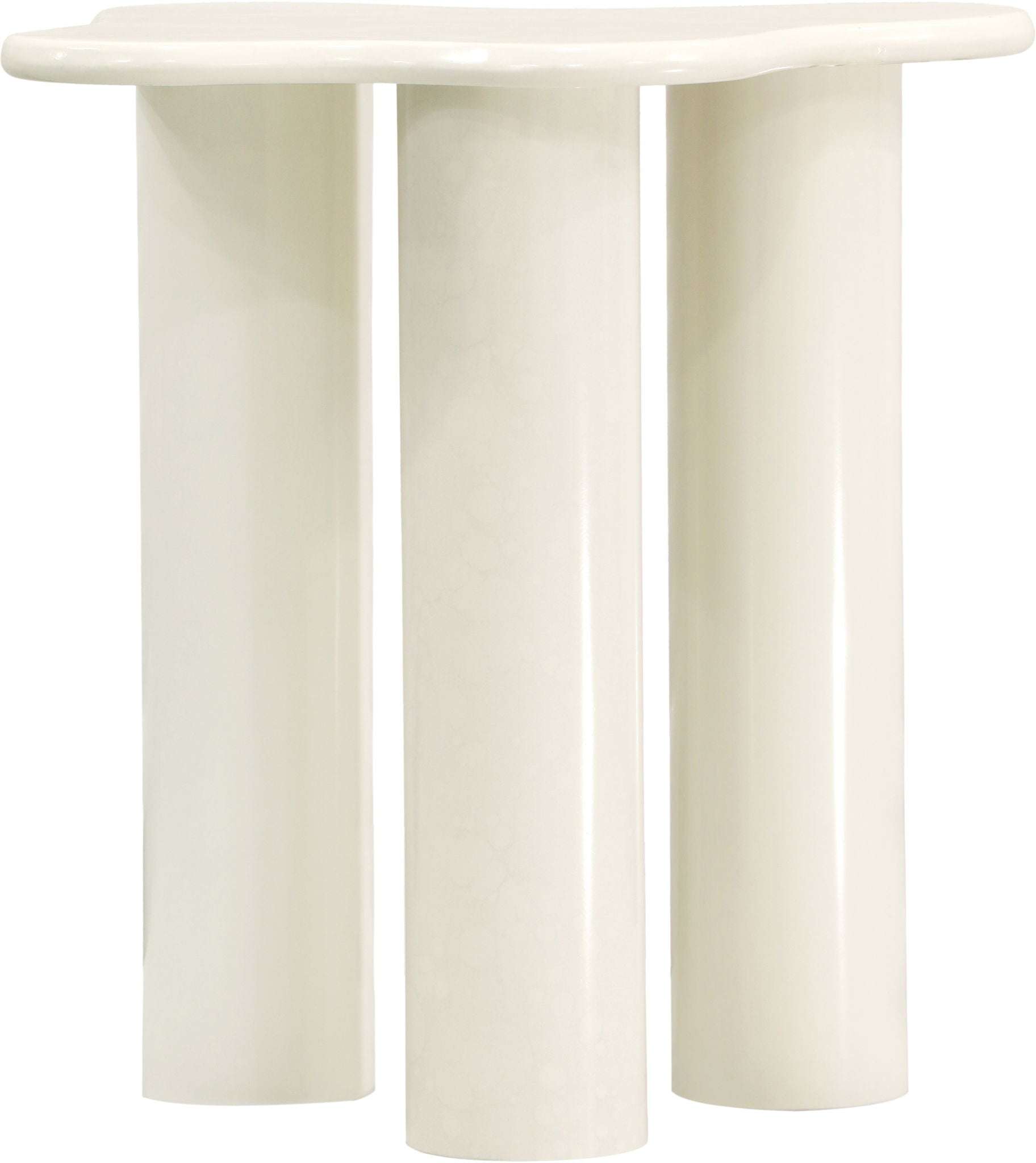 The Romaine End Table is a stunning piece that will elevate the style of any living space. Its modern, sleek matte finish gives it a sophisticated look, while its sturdy iron metal construction ensures durability. The pedestal bases provide excellent support and stability, and the wavy top adds a unique design element. It's a great way to add a distinctive touch to any space.