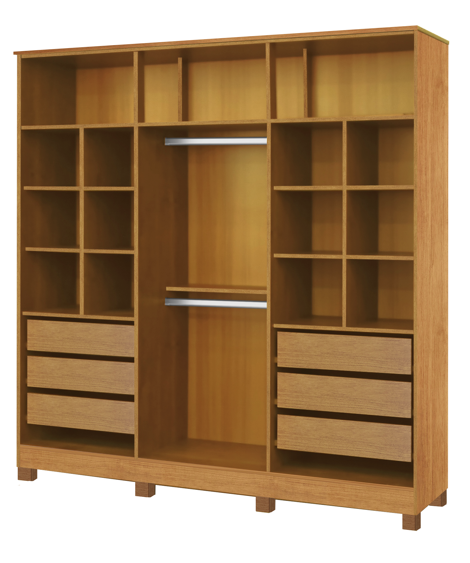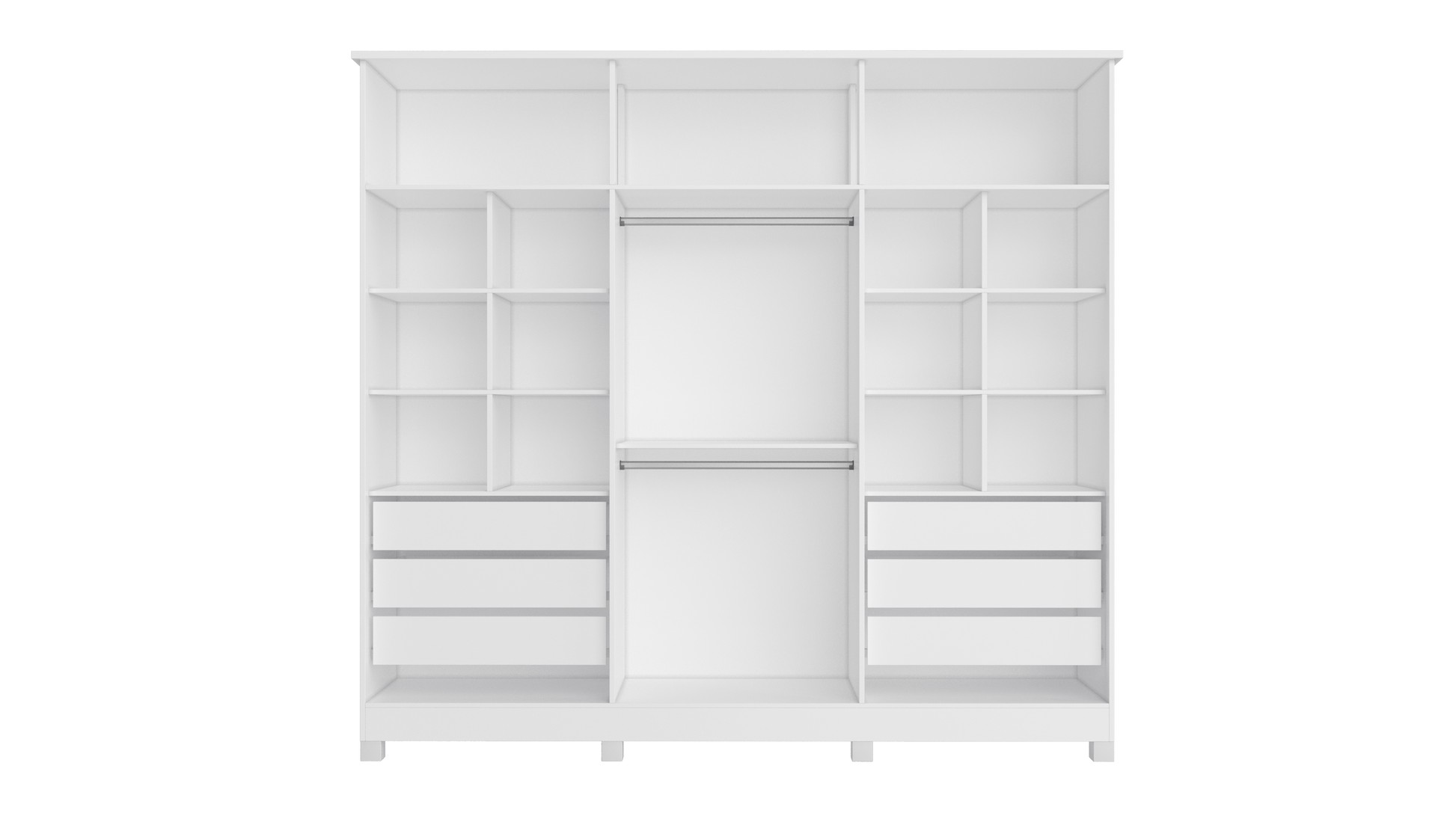Space for long garments and aluminum hanging rods.