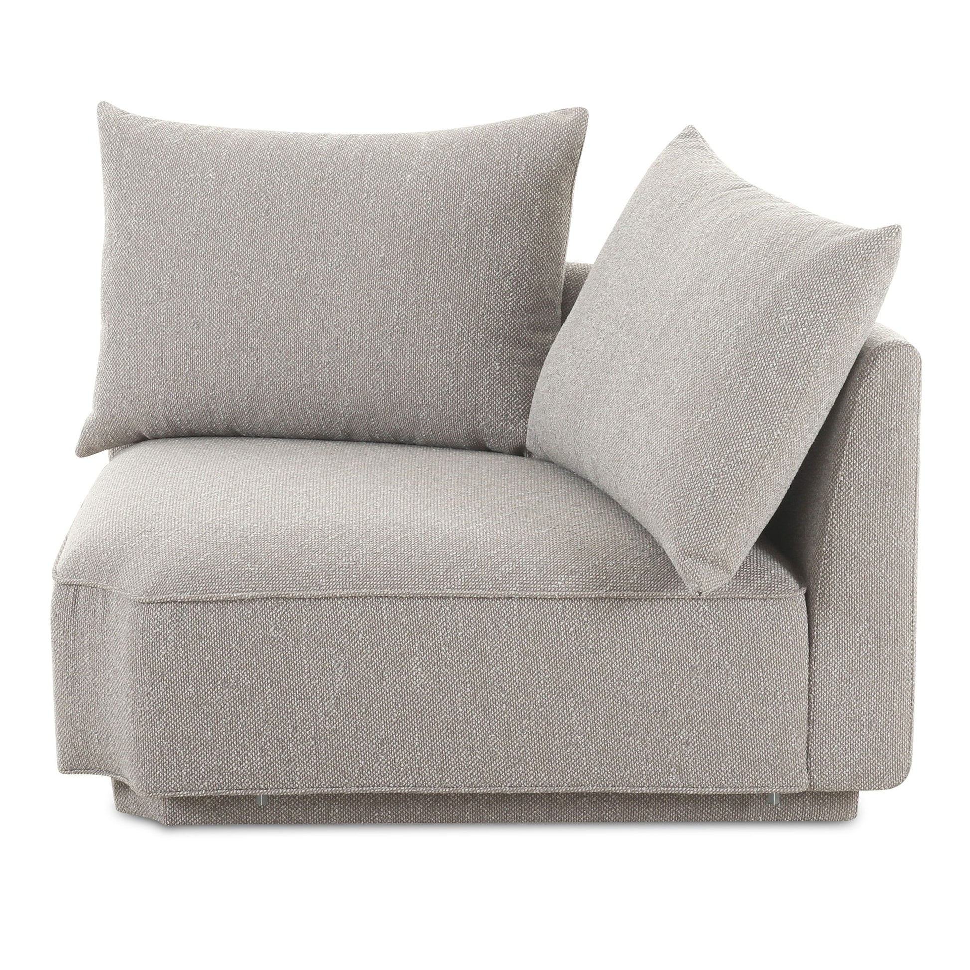With its clean lines and bolster cushion arms, the Rosello corner chair offers a versatile seating option with its transitional feel. Finished in a highly textured fabric, this piece adds depth and visual interest while ensuring optimal comfort and relaxation.