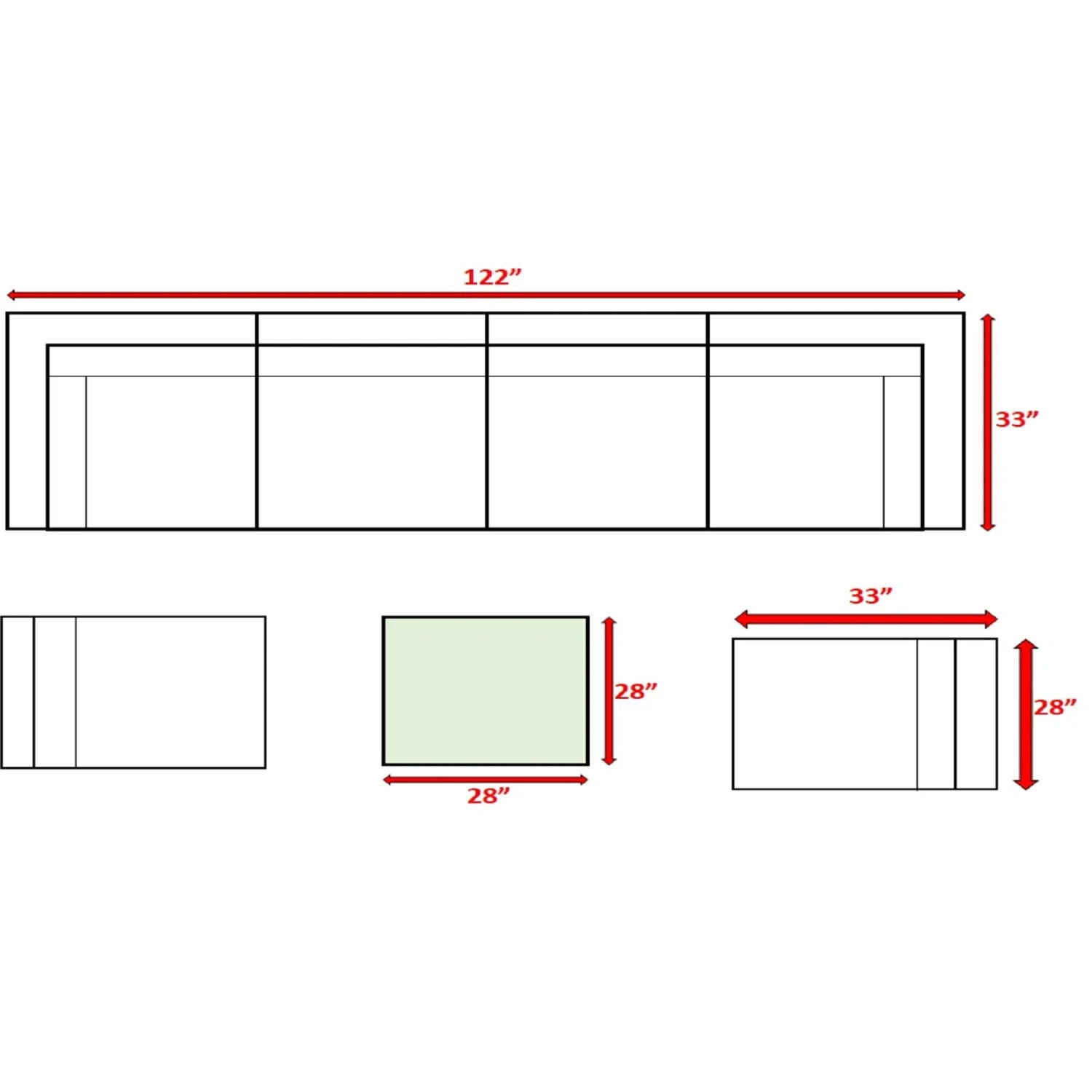 Outdoor Sectional Sofa Set With 11 Cushions, Glass Coffee Table, 4 Person - Brown