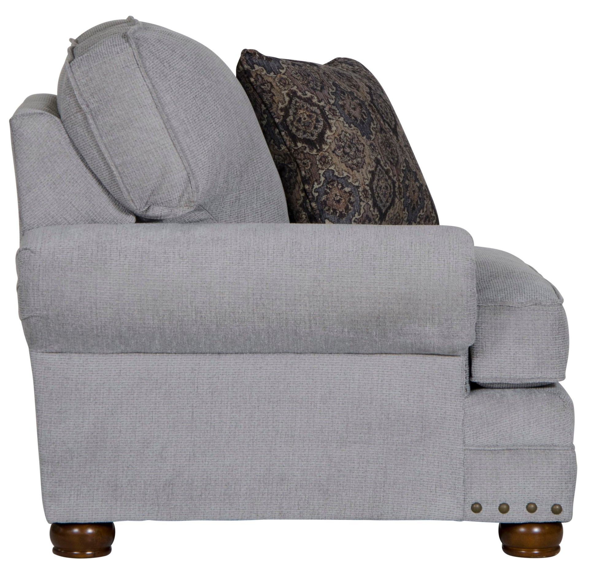 SINGLETARY is a Classic Traditional design in a soft chenille with turned wooden leg and decorative nail accent details.
