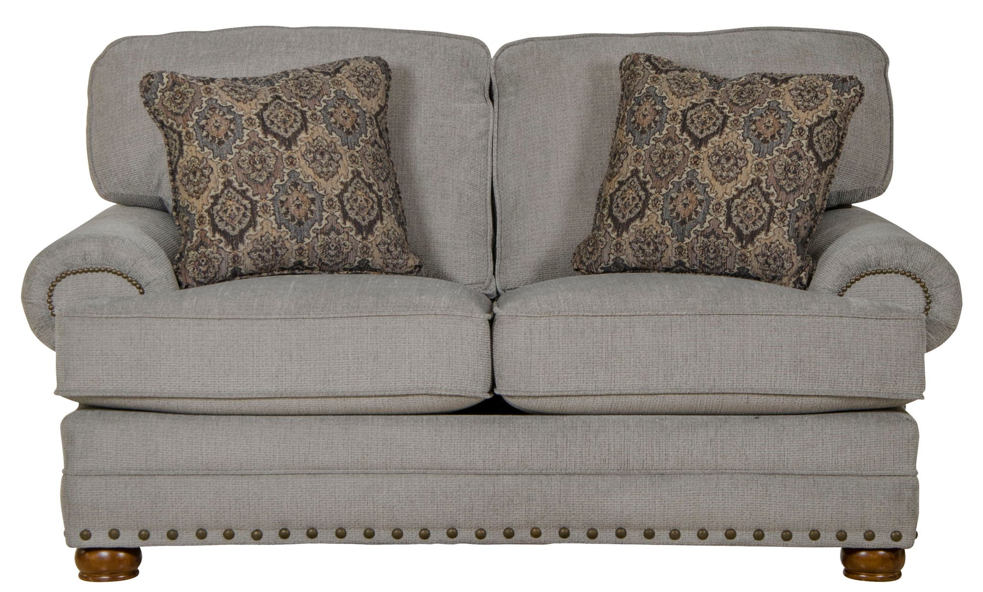 SINGLETARY is a Classic Traditional design in a soft chenille with turned wooden leg and decorative nail accent details.