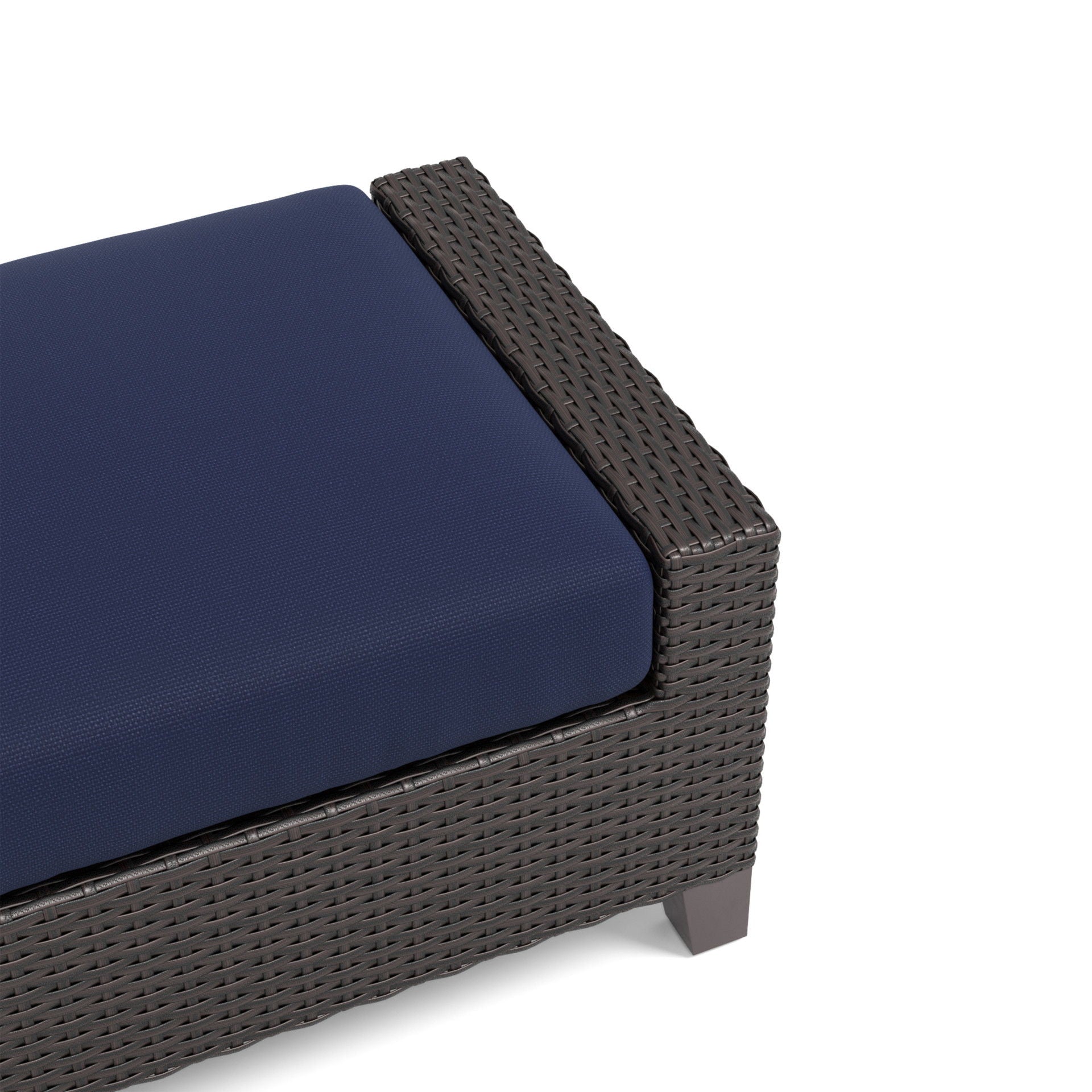 The Skye Outdoor Ottoman Set includes 2 cushioned ottomans and is crafted with durable aluminum frames and a baked-on powder finish to ensure longevity and scratch resistance. The high-density HDPE wicker mimics the look of natural wicker while being low maintenance and weather resistant. 6 1/2" thick seat cushions made of high-density foam, upholstered in our exclusive SUNDURA® Olefin fabrics provide a comfortable footrest or additional seating. These fabrics are not only breathable but also resistant to water, stains, mold, and mildew, ensuring your furniture stays pristine year-round.