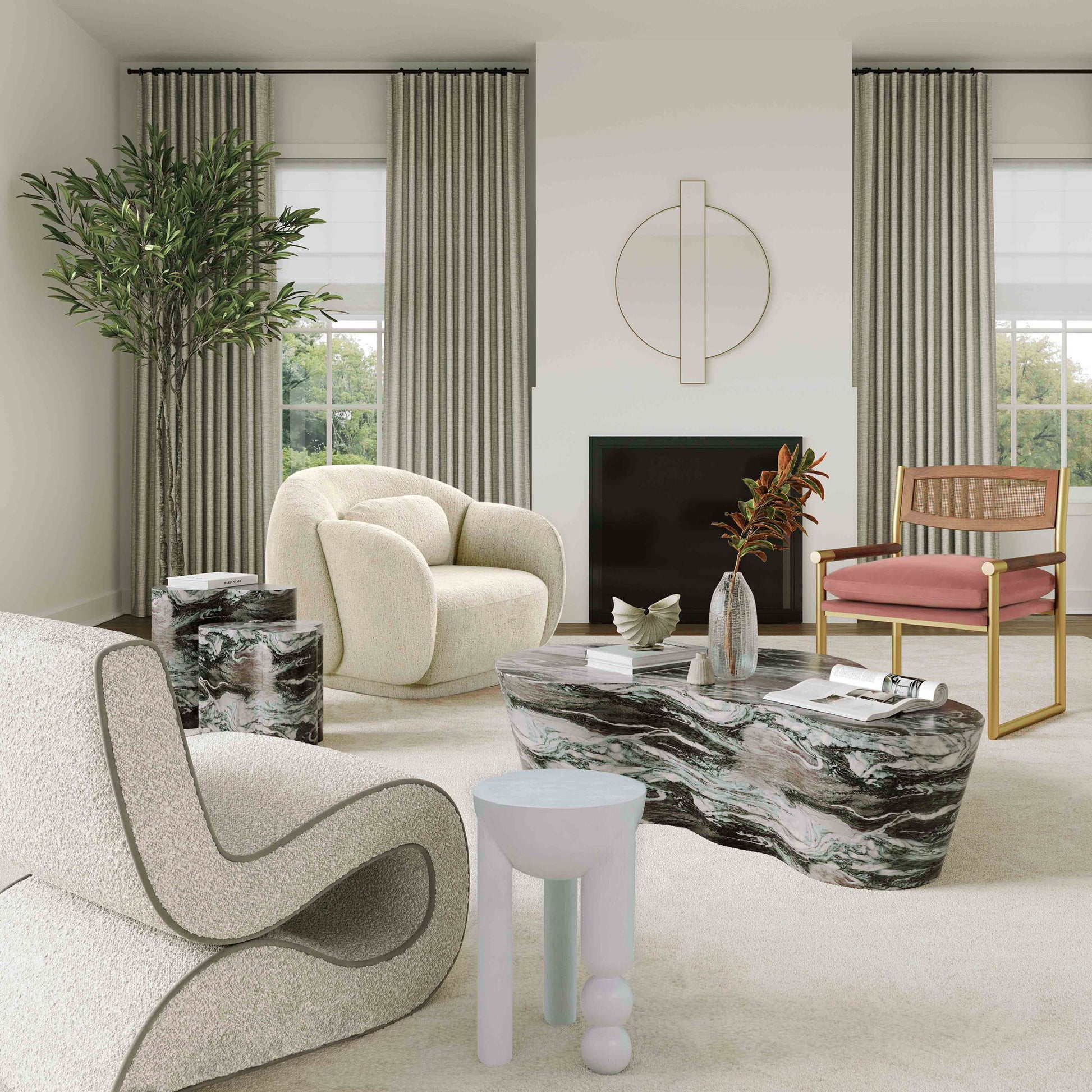 Introducing the Slab Faux Marble Occasional Table Collection - the perfect addition to any modern and stylish home. This collection features a stunning grey and blush faux marble tabletop, beautifully crafted to mimic the natural veining and texture of genuine marble. The collection includes a coffee table and two end tables, perfect for entertaining guests or holding your favorite home decor items.
