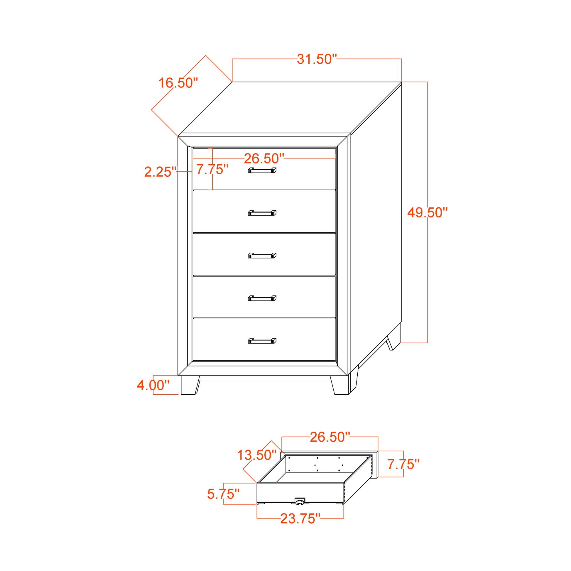 • 5 Drawer Chest: Provides ample storage for clothing, linens, and personal items.