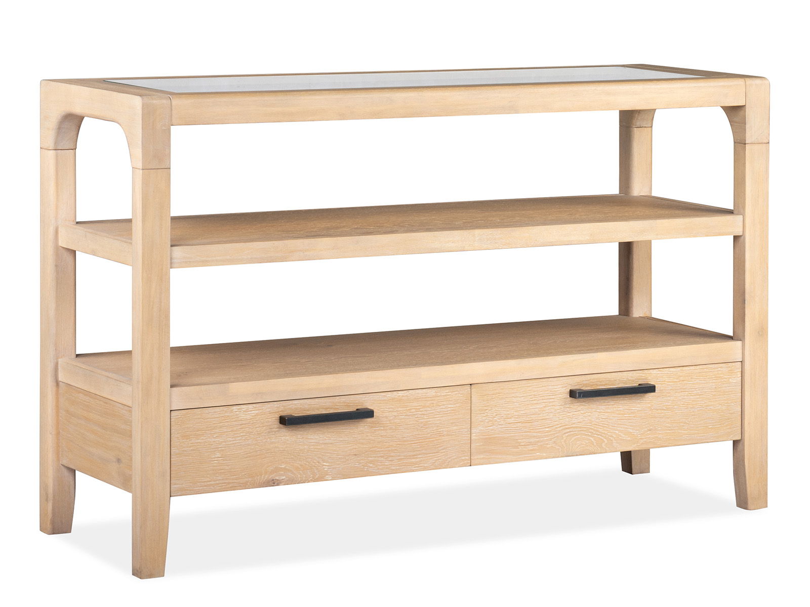 The Somerset dining collection represents the essence of effortless elegance. Its soft curves and rounded angles are easy on the eyes while open shelves and cutouts lend a feeling of lightness and youthfulness. Finished in a soft shade of Butternut that accentuates its knotty white oak veneer patterns and these soothing designs feel modern yet timeless. Bold graphite hardware provides contrast to the relaxed finish and adds another layer of visual interest to the case pieces. Coordinating chairs are upholstered in an Omari Natural fabric for ultimate decorating flexibility. For family dinners or entertaining friends and Somerset dining options offer the ultimate combination of beauty and function.