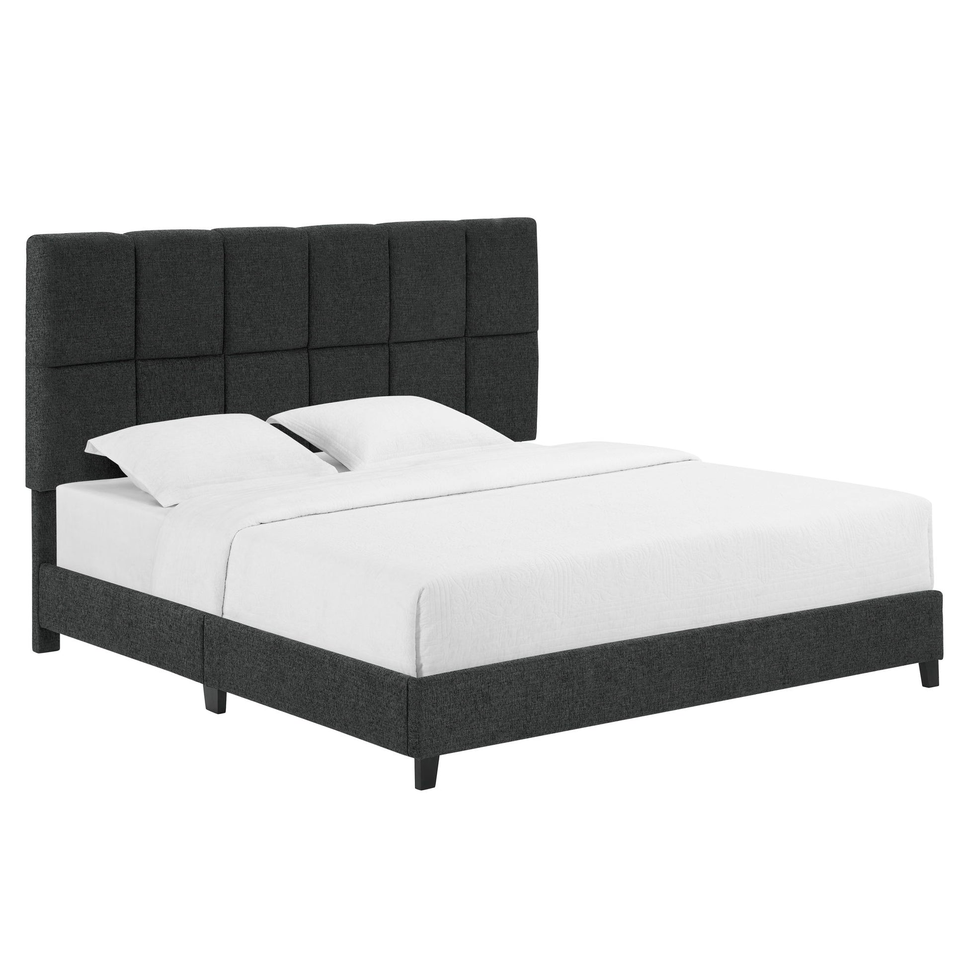 King Size Squares Upholstered Platform Bed - Navy Blue Denim