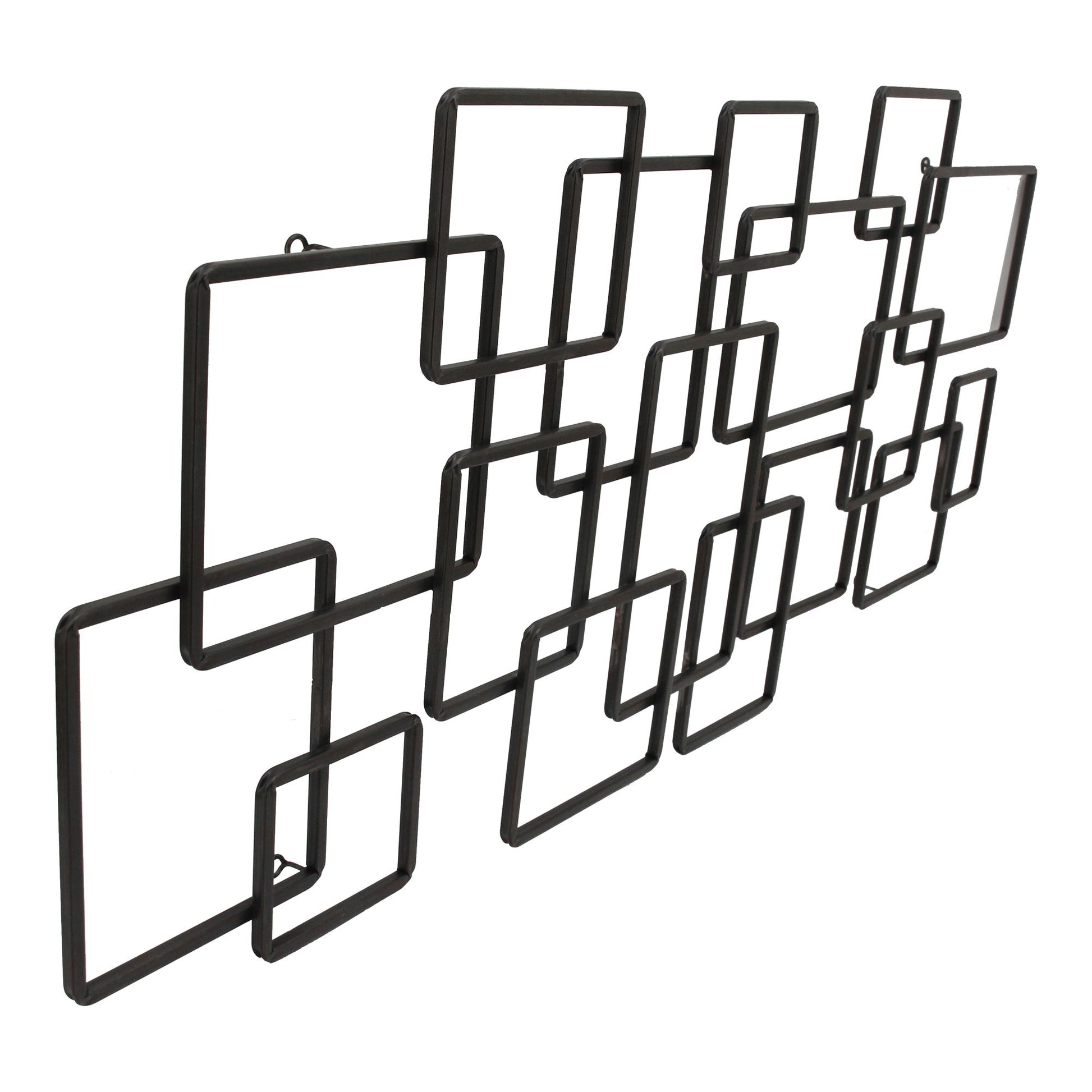 This modern-industrial accent will add charm and character to your home. Black iron rectangles that will let your wall show through, adding a new texture and dimension to the room.