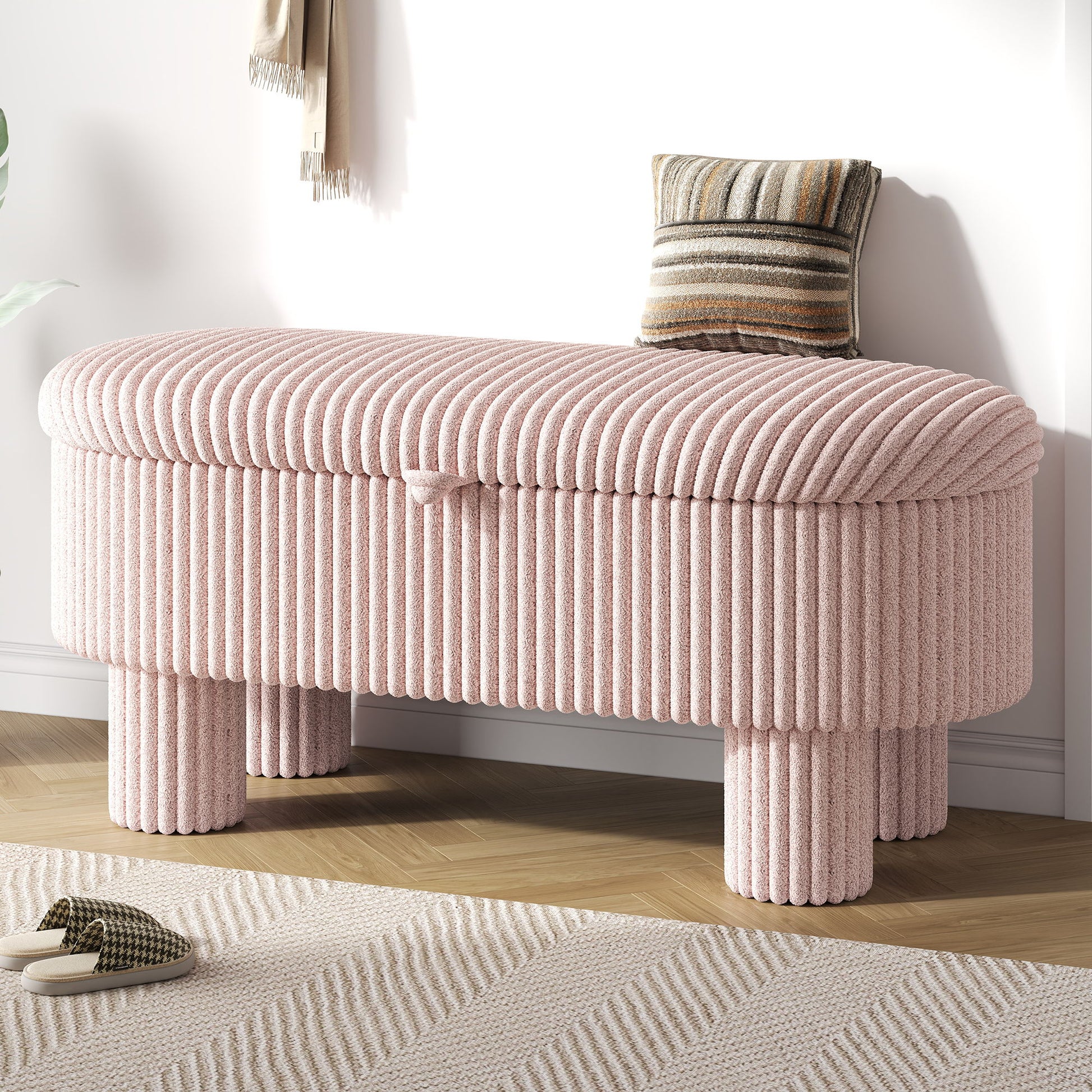 Storage Ottoman Upholstered Bench With Lift Top Storage For Bedroom - Pink