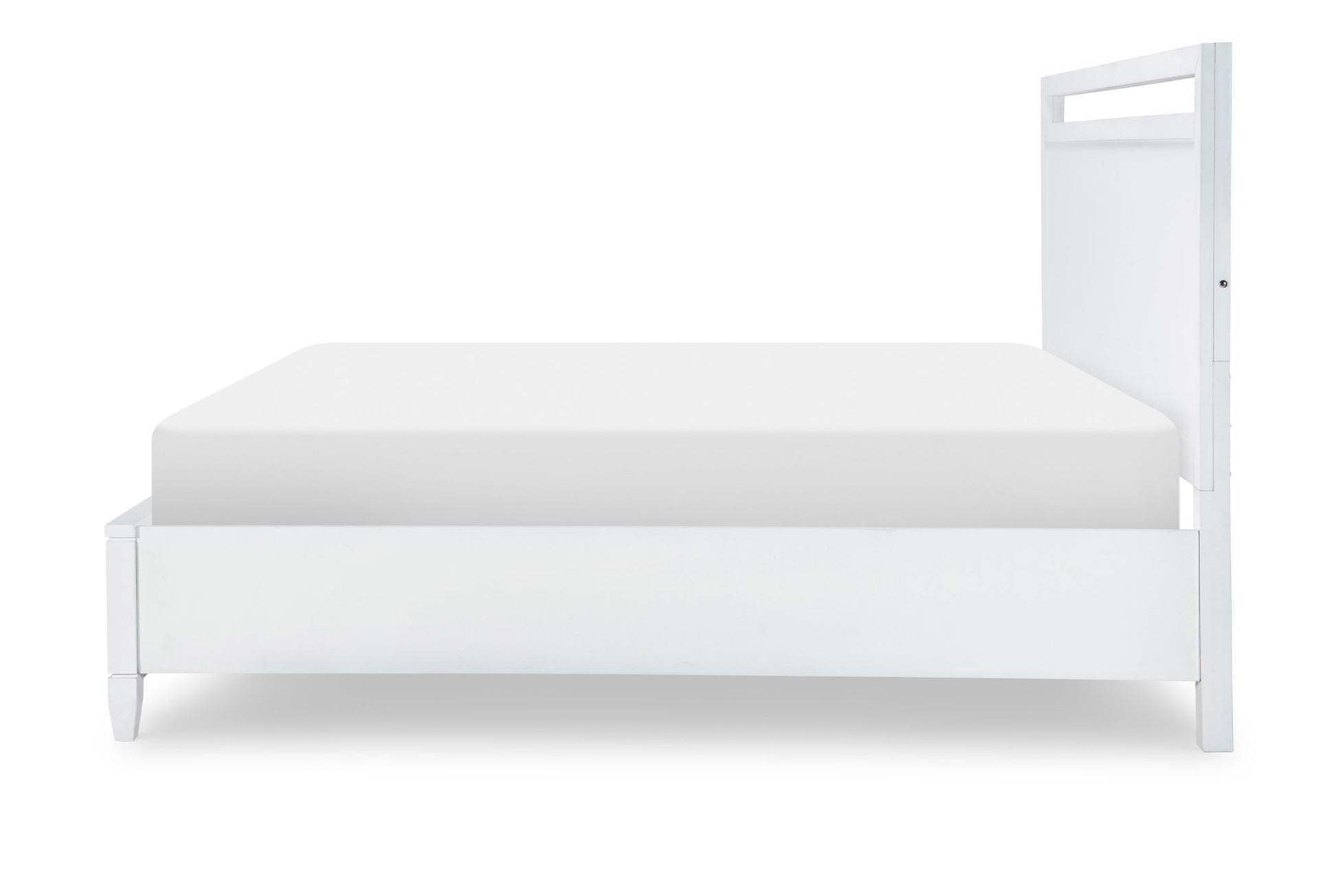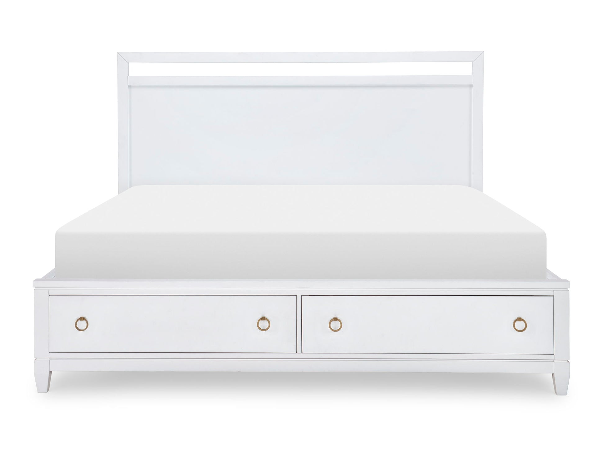 The Summerland Panel Bed with Footboard Storage Offers a LED Lighted Headboard and Two Drawer Footboard Storage. Elements such as floating tops, tapered feet, flat drawer fronts, and simple shapes lend the perfect backdrop for easily creating a beautifully styled space. The pieces and scale of Summerland allows multiple options for a modern, livable style.