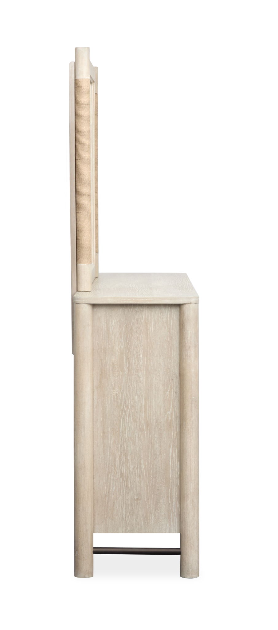 Design your ultimate bedroom retreat with the fresh and easy going character of the Sunset Cove bedroom collection. Simplified shapes and rounded forms and softly curving corners define the character of these captivating designs. Each piece is expertly crafted of Cathedral White Oak veneer with hardwood solids and finished in a light and natural shade of Sanibel Brown accented with Dark Bronze hardware. Start with one of its statement-making beds to create a focal point and then choose your favorite storage pieces. With understated elegance and the group offers smart storage options distinguished by features such as paper cord-wrapped decorative accents and open and closed storage and and metal accents. An honest and straightforward expression of good design and Sunset Cove is hard to surpass.