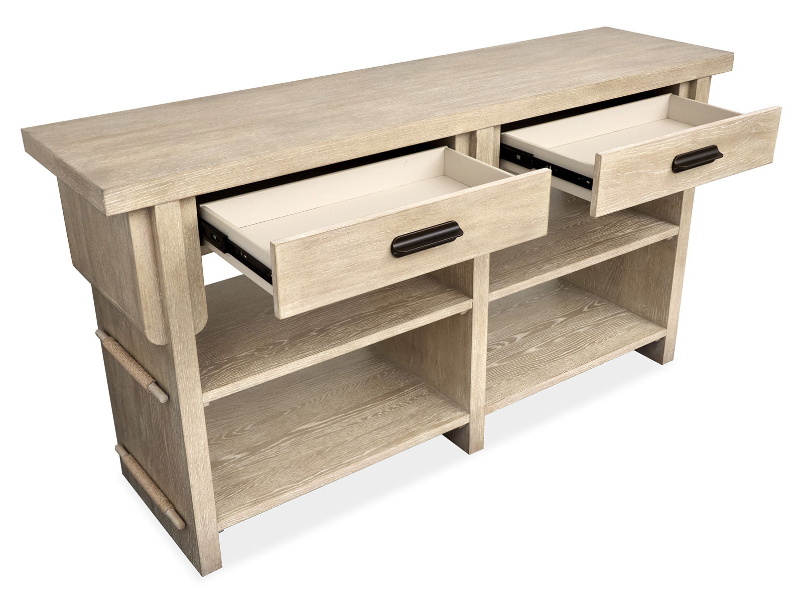 It’s easy to reimagine and reinvent your dining room with the fresh and easygoing character of the Sunset Cove dining collection. Simplified shapes and rounded forms and softly curving corners define the character of these captivating designs. Each piece is expertly crafted of Cathedral White Oak veneer with hardwood solids and finished in a light and natural shade of Sanibel Brown accented with Dark Bronze hardware. Destined to elevate the style quotient of any dining area and the group includes distinctive features such as paper cord-wrapped decorative accents and metal table stretchers and and metal-capped table legs. An honest and straightforward expression of good design and Sunset Cove is the essence of hospitality.