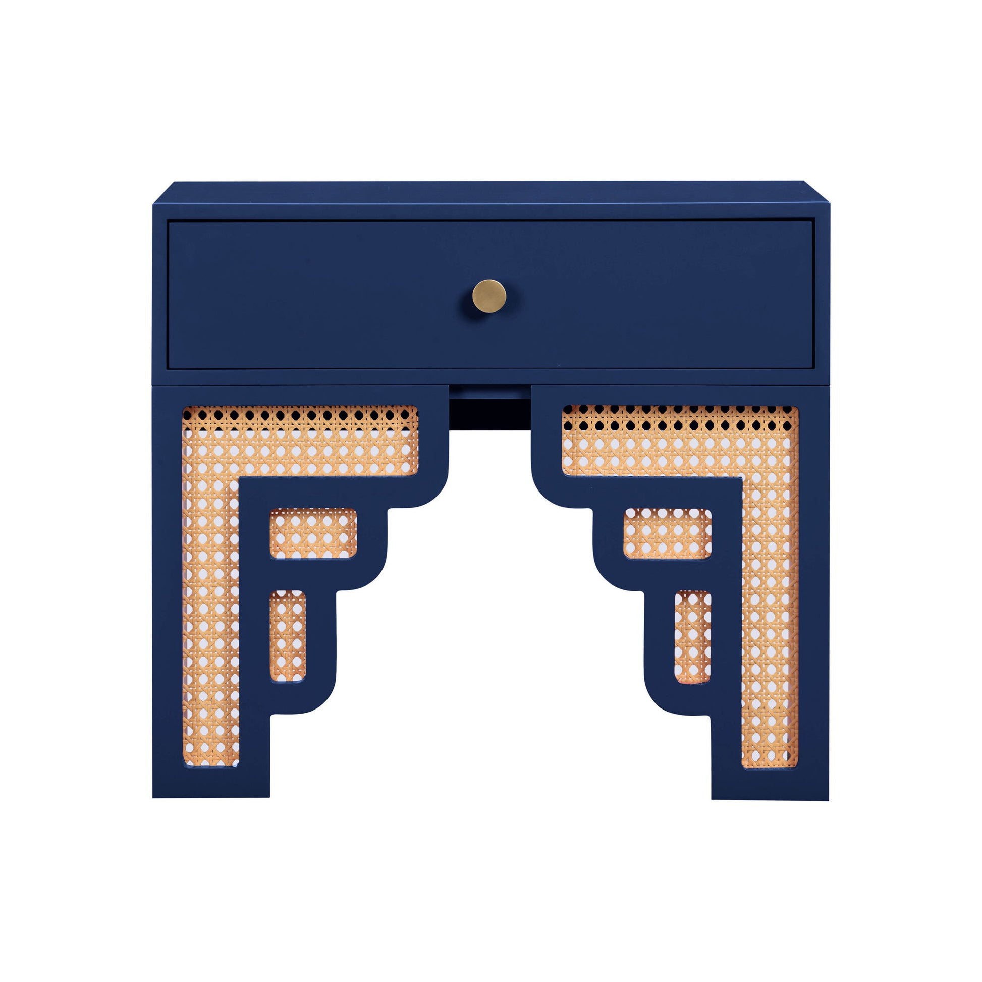 Inspired by the Art Moderne style, the Suzie Nightstand alludes to Palm Springs' art-deco design through its bold colors and curvaceous form. This wooden nightstand features a soft close drawer for practicality; while its rounded edges and woven rattan details add a playful twist. The Suzie will cement itself as the perfect balance between contemporary living with a touch of glamour in your space!