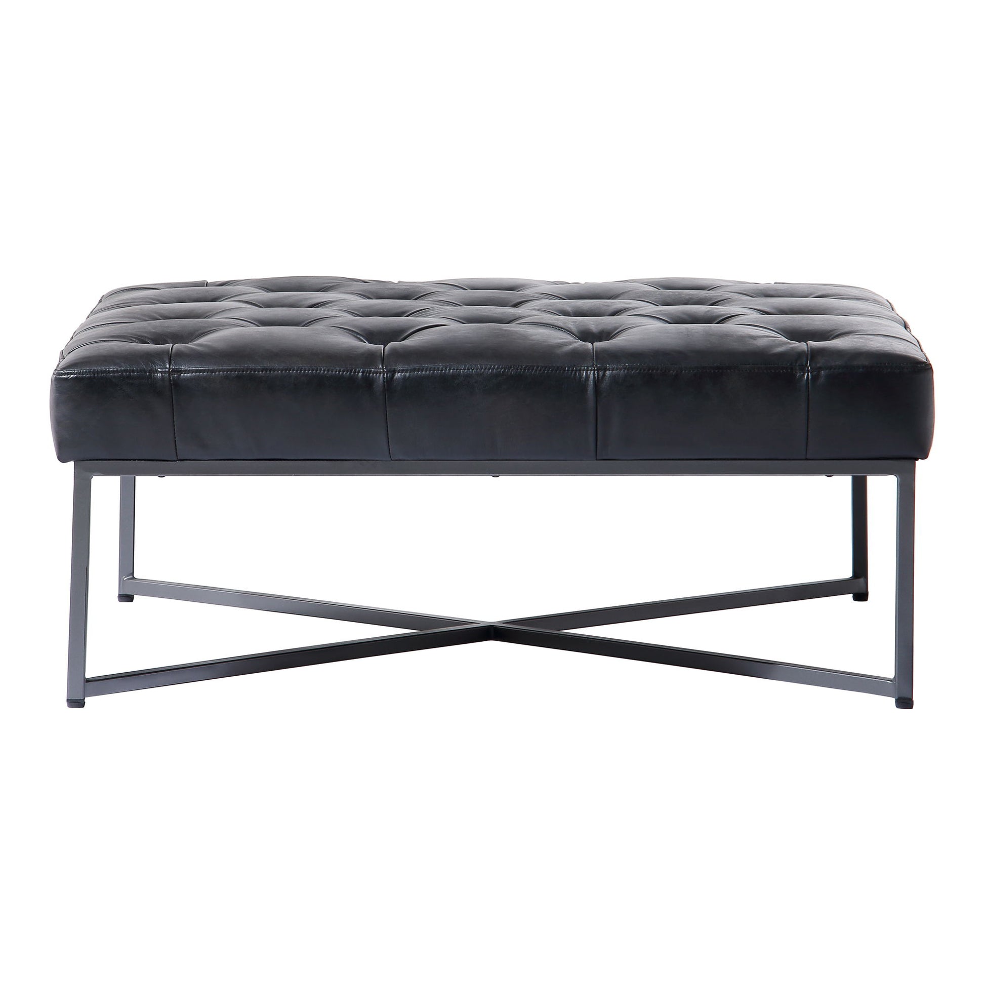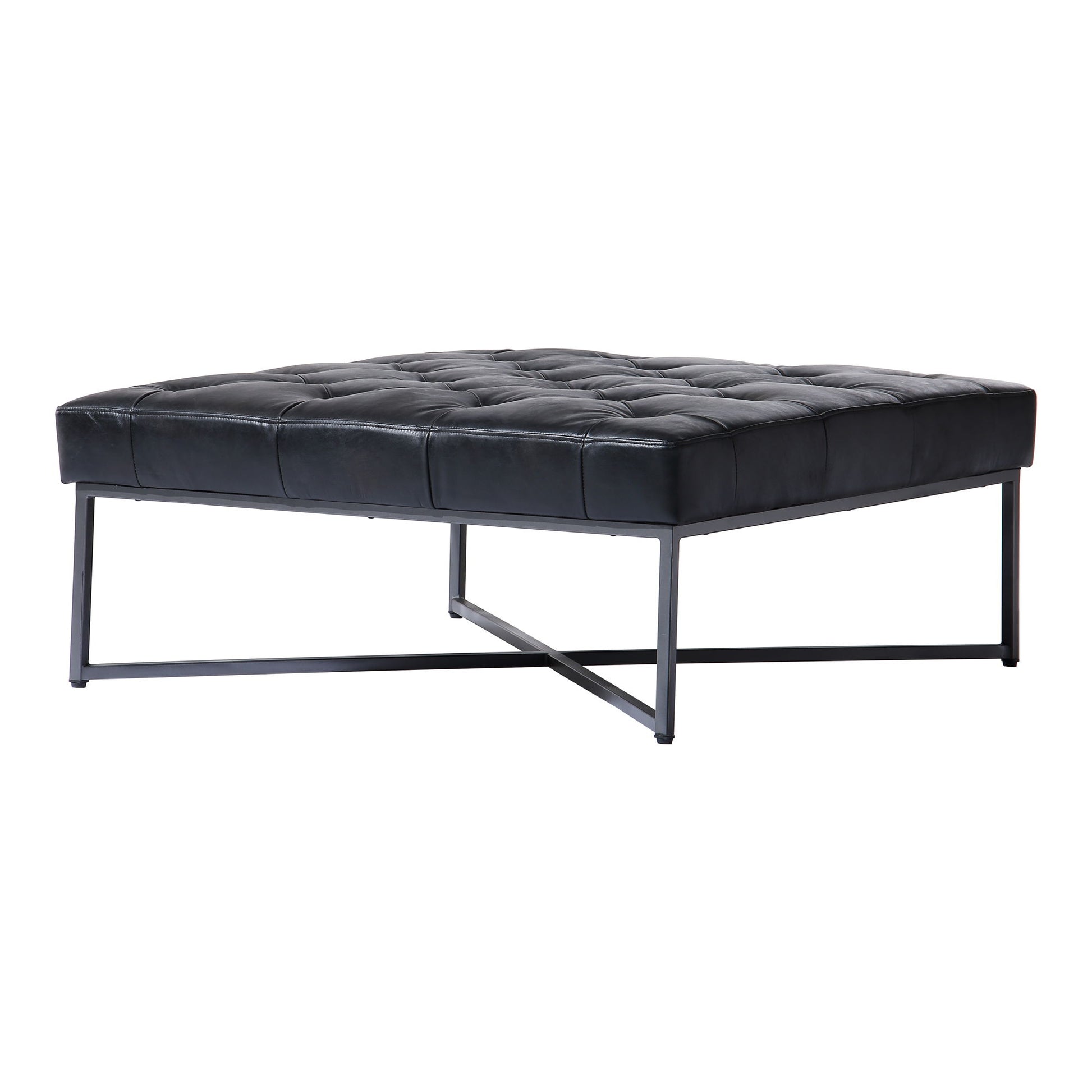 Nothing says modern like multi-purpose. A subtle and strong contemporary-modern design helps the Thad ottoman bring bold flair to your living room. With a low profile and large build, its roomy design means Thad is perfect for those in need of more tabletop space—or even an occasional seat. A pine frame gives this ottoman support, while gentle foam cushioning gives it a comfy softness, making it perfect for guests to put their feet up. Tufted, top-grain buffalo leather upholstery in black offers timeless style. An ottoman that owns the space it occupies, while bringing maximum versatility.