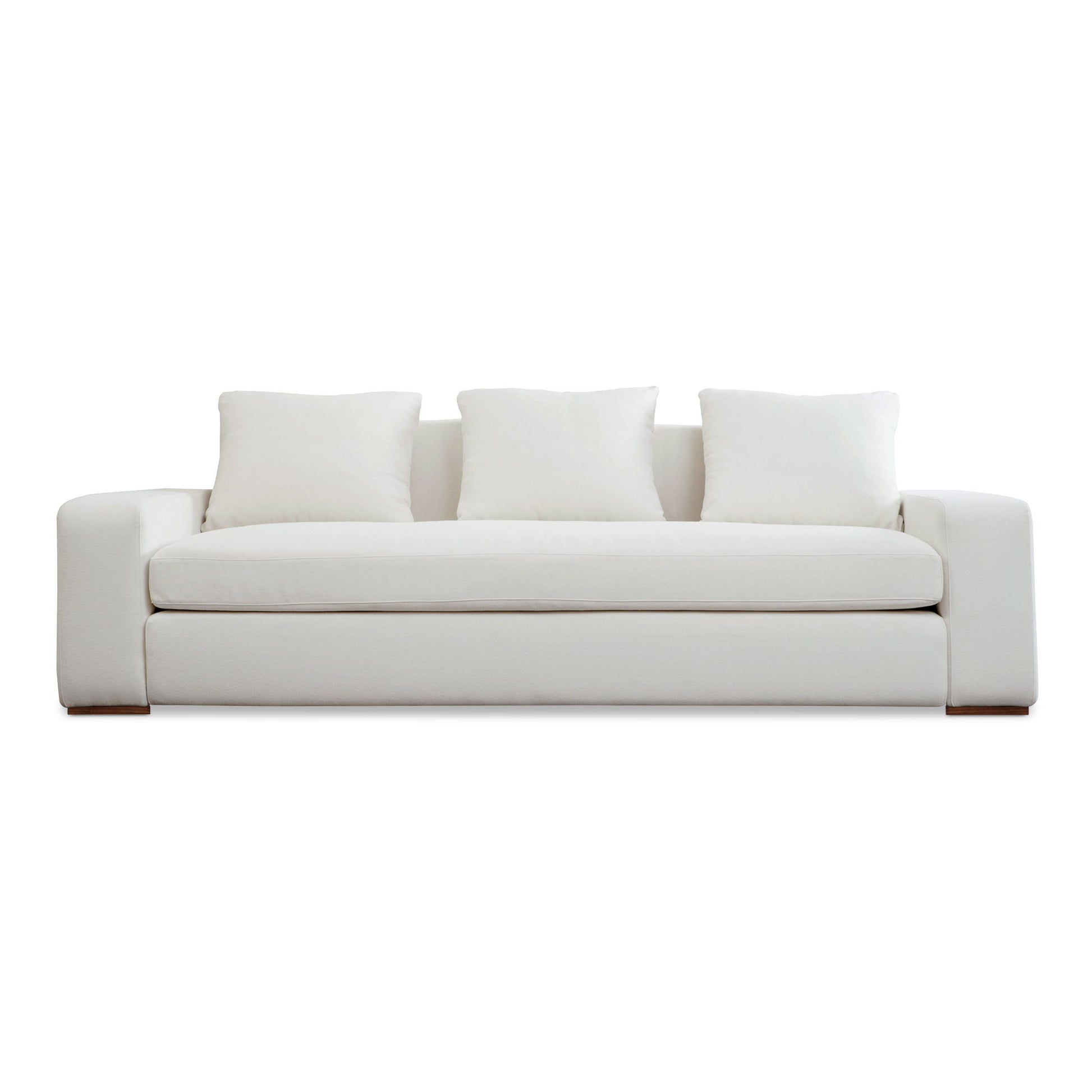 • Oversized with wide track arms, bench seat, three removable & reversible back cushions, with even channeling within the seat to ensure feathers stay evenly distributed
