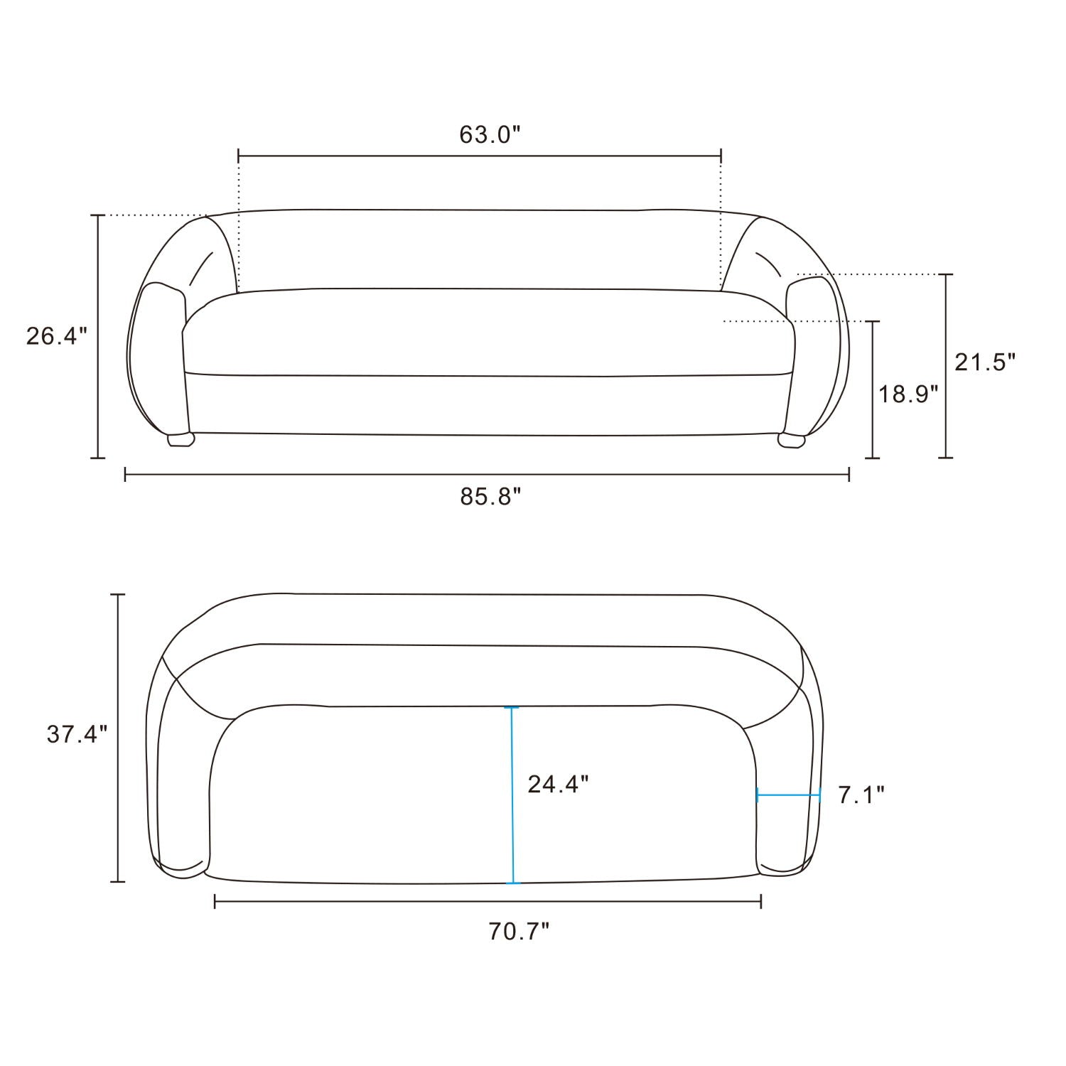 85.8"W x 37.4"D x 26.4"H - 110.0 lb