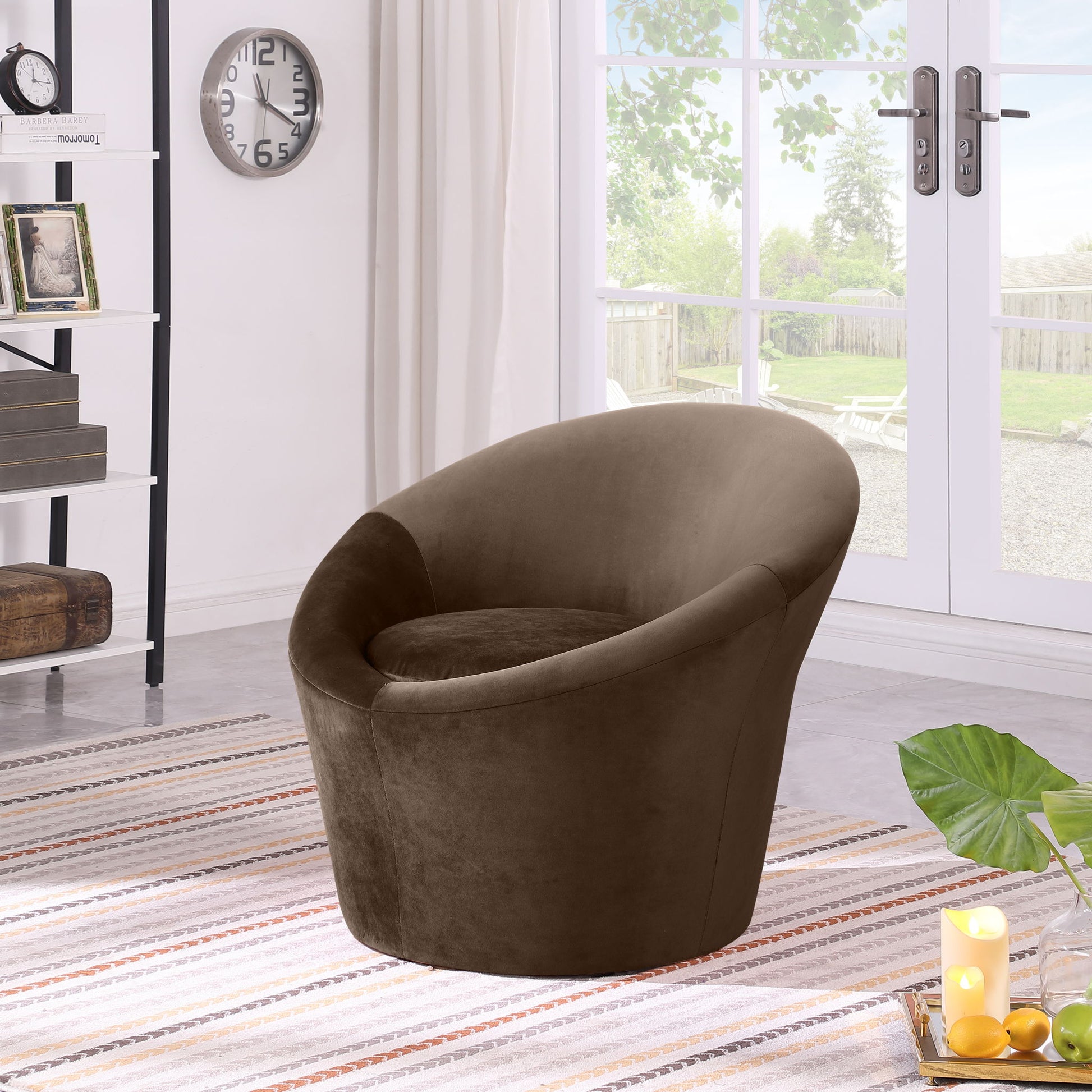 Nestle into the soft embrace of the Tristan velvet accent chair. Its elliptical compostition and plush velvet upholstery create a cozy and inviting seating experience. An ergonomic design makes it a standout piece that's both stylish and comfortable that adds a touch of sophistication to any space.