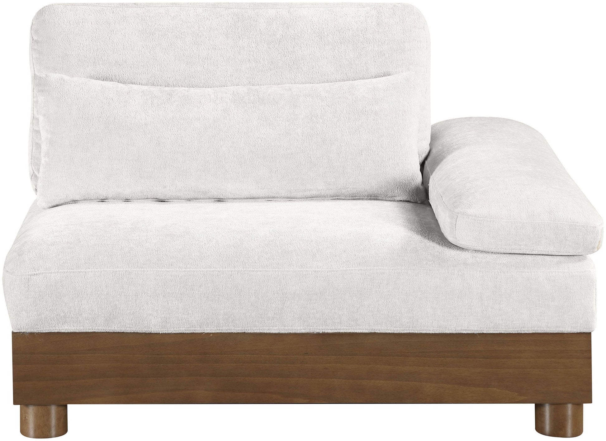 Turin - Chenille Fabric Upholstered Modular Right Arm Chair - Cream / Brown Walnut
