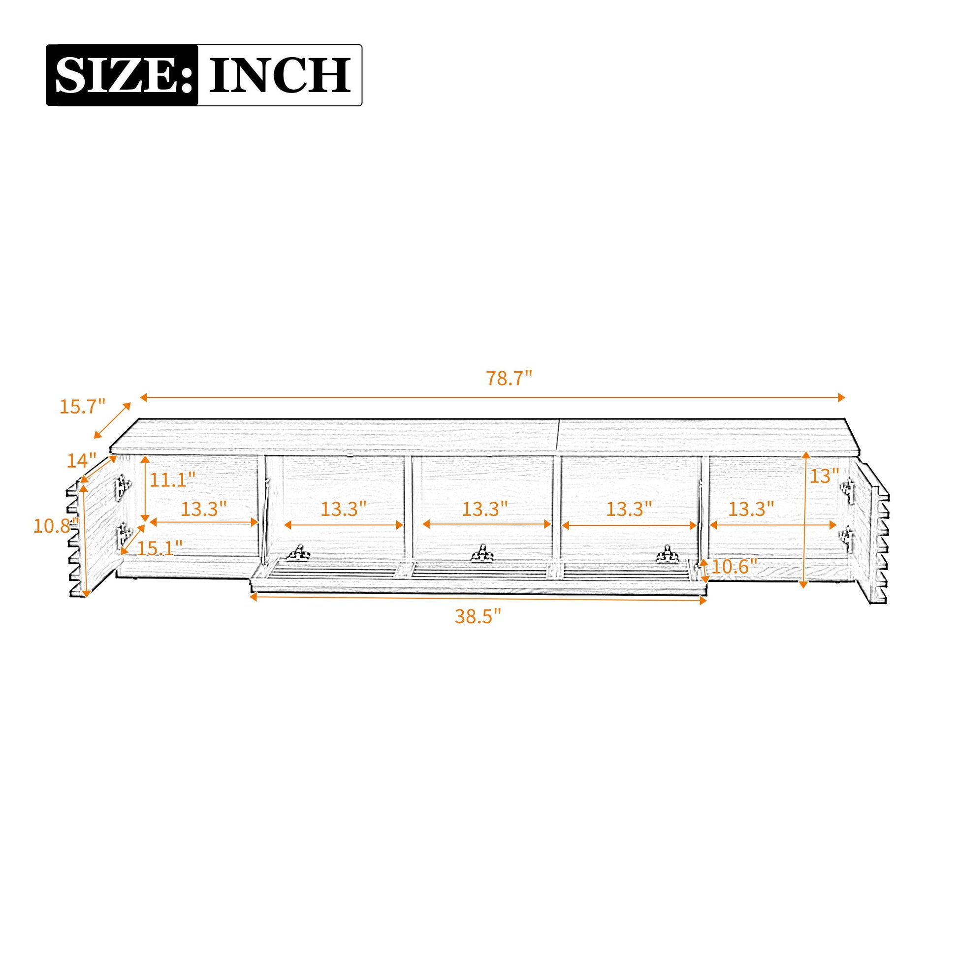 • Organized Entertainment Hub: Horizontal slatted doors hide spacious compartments, keeping accessories out of sight while maintaining a clutter-free, streamlined appearance.