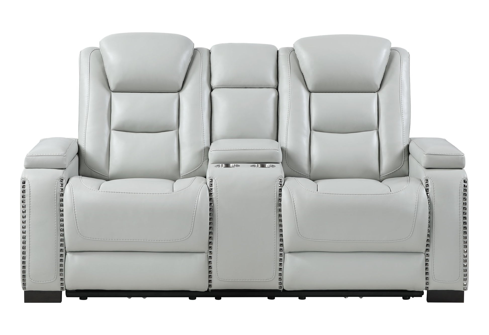 U8609 - Power Console Reclining Loveseat With Power Headrest, USB, Outlet, LED And Bookshelf Arm - Gray