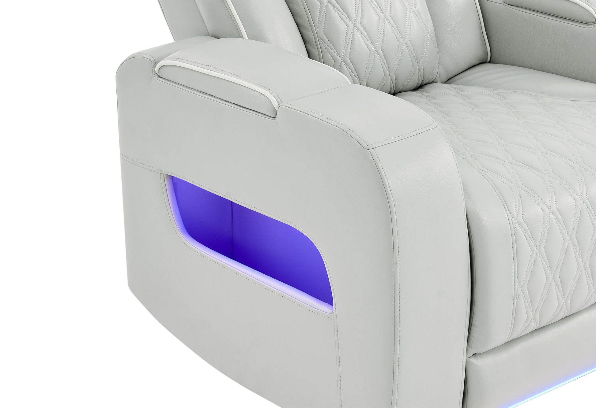 The U8611 Upholstery Set by Global Furniture USA combines contemporary luxury with innovative functionality, creating the perfect centerpiece for your living room. Upholstered in a soft and inviting blanche silver fabric, this three-piece collection is designed with dual power features, offering both power reclining and power headrests for personalized comfort at the touch of a button. A distinctive diamond-pattern stitch detail across the backrests adds a refined design element that elevates the sets sophisticated look. Beyond its elegant appearance, the U8611 is filled with thoughtful features to enhance everyday living. Each arm includes hidden storage and side pockets with integrated LED lighting, while additional LED accents illuminate the base of the pieces, adding a modern glow to your space. The sofa includes a drop-down table equipped with USB ports, outlets, cupholders, and reading lights, while the console loveseat offers a built-in speaker system, cupholders, and extra storage. Every piece also includes a USB port on the power switch, making it easy to stay connected while you relax. The U8611 Upholstery Set is the perfect balance of comfort, technology, and modern design.
