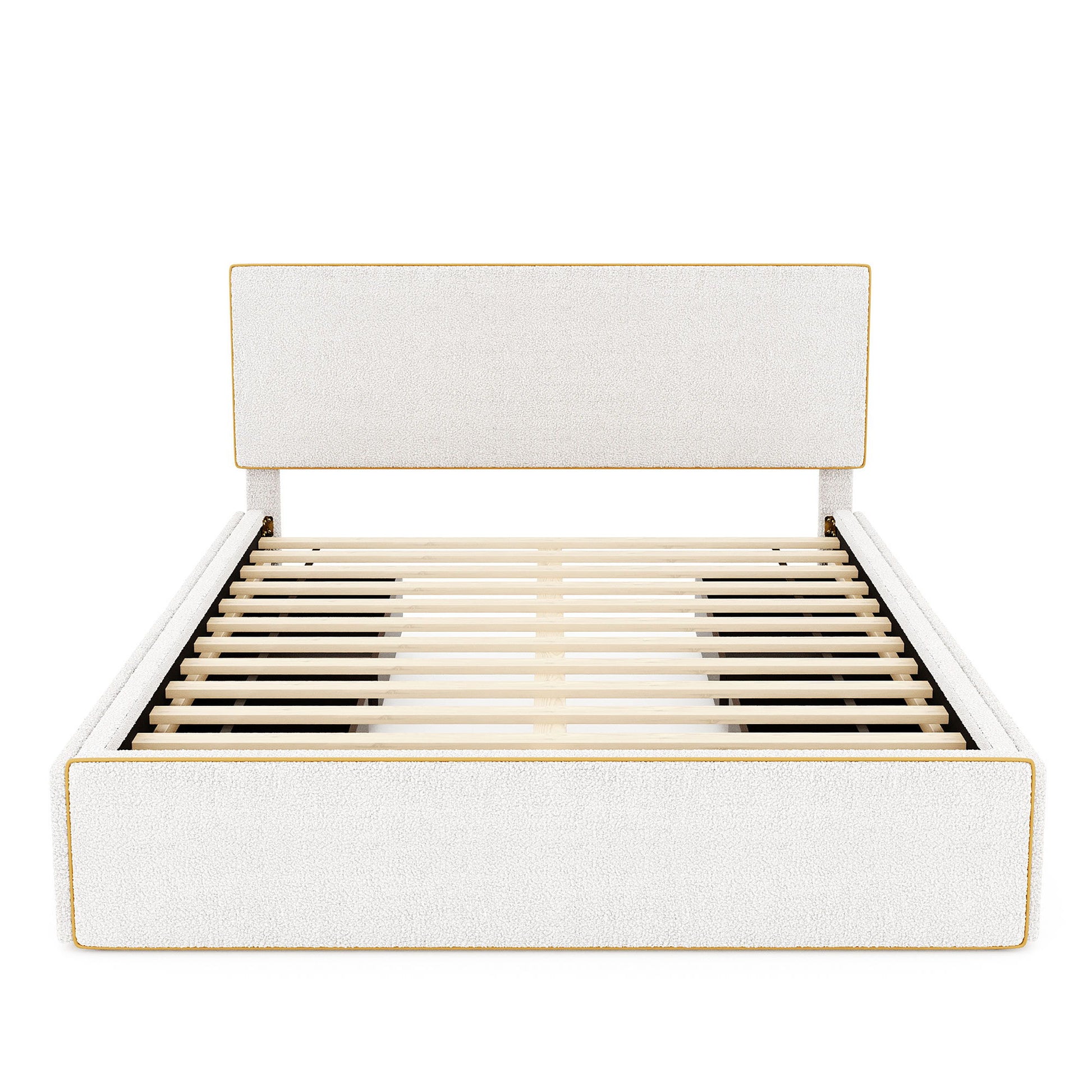 Queen Size Upholstered Platform Bed With 4 Drawers And Golden Edge On The Headboard & Footboard - White