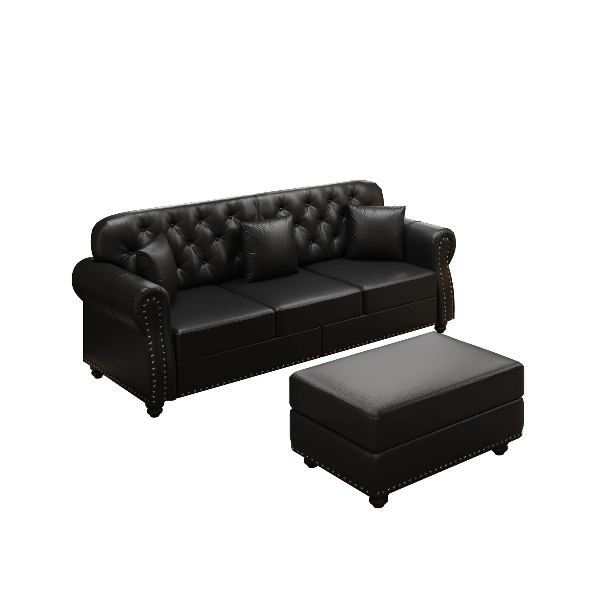 Upholstered Sofa With Nailhead Trim, Rolled Armrests With Ottoman