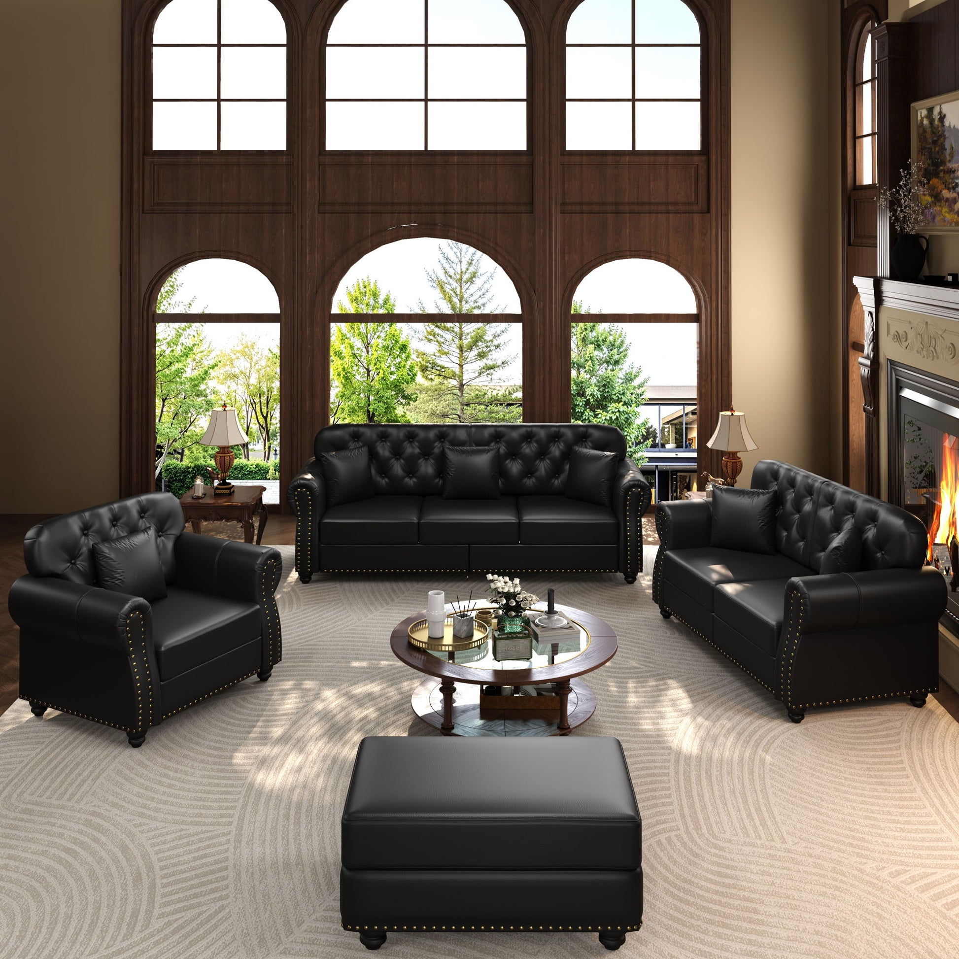 - Upgraded Comfort: This sofa set is crafted from high-quality faux leather,, offering visual warmth and a luxuriously soft, plush touch. It is featured with high-density resilient sponge and high-quality spring that provides gentle, embracing support .