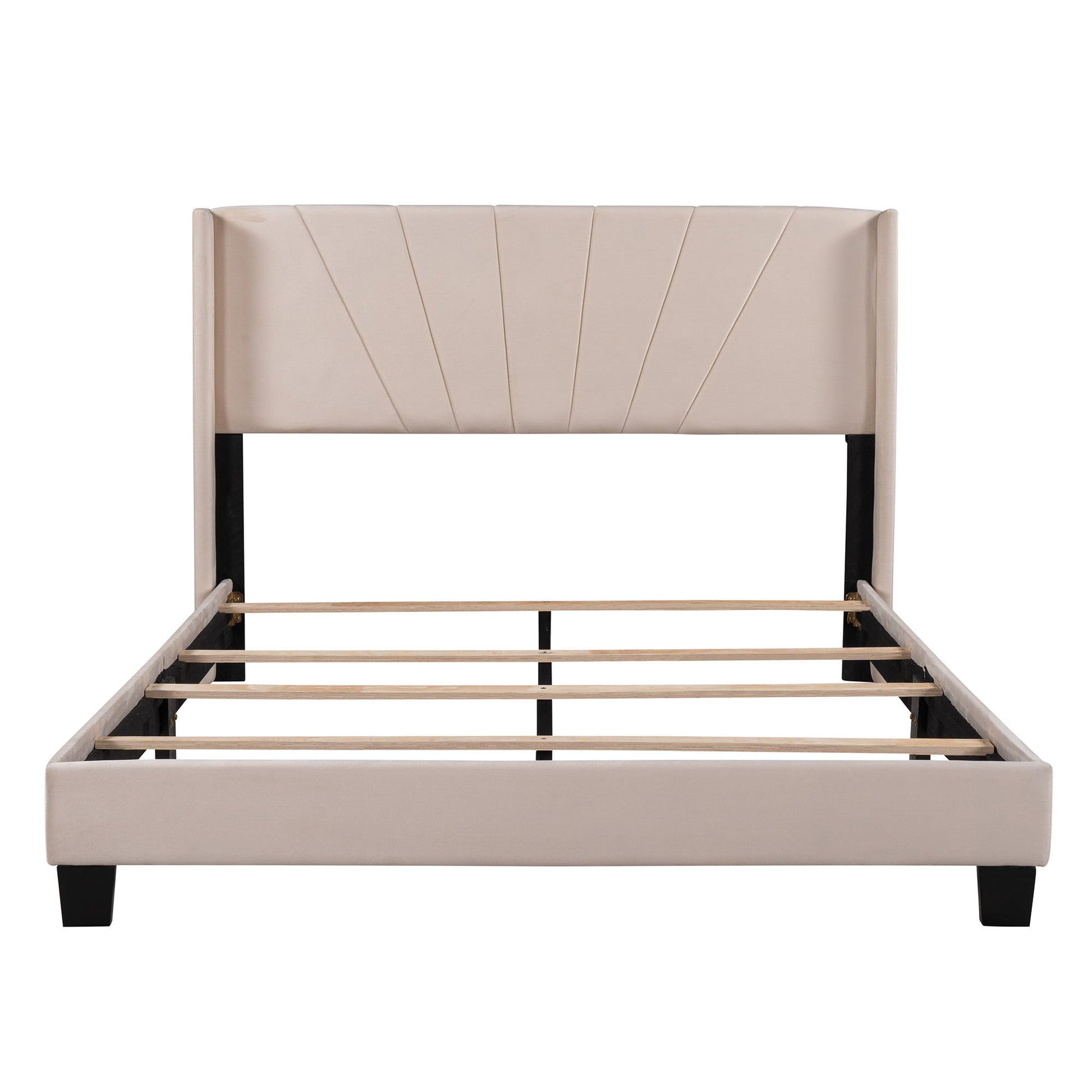 A Box Spring is required:  This -d bed frame comes with four wooden slats, and as such this bed requires a box spring. Mattress is also not included. Headboard is included as a comfy velvet fabric backrest that brings you and your partner a cozy feeling.