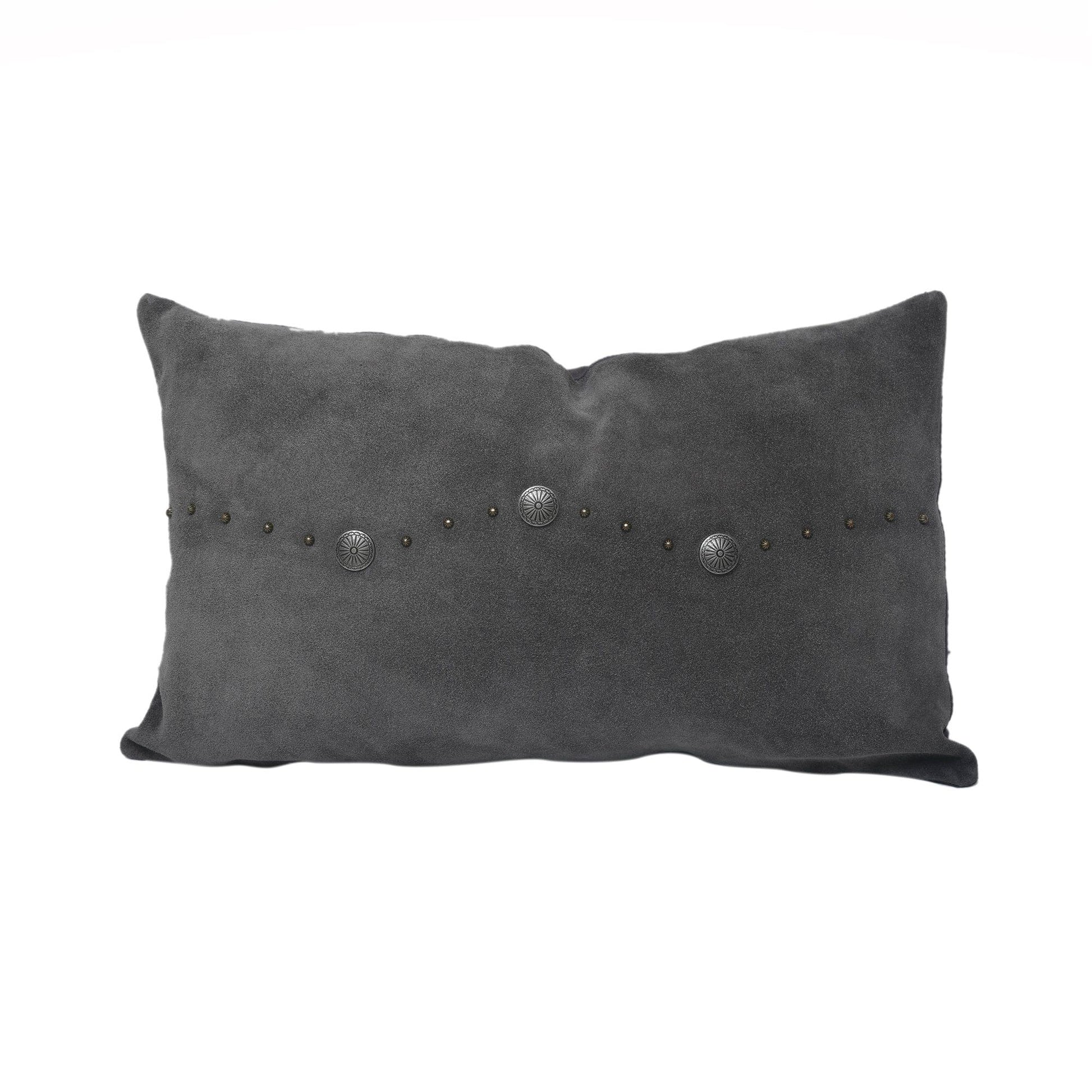 Western Suede Pillow - Western Suede Antique Silver Concho & Studded Lumbar Pillow - Gray