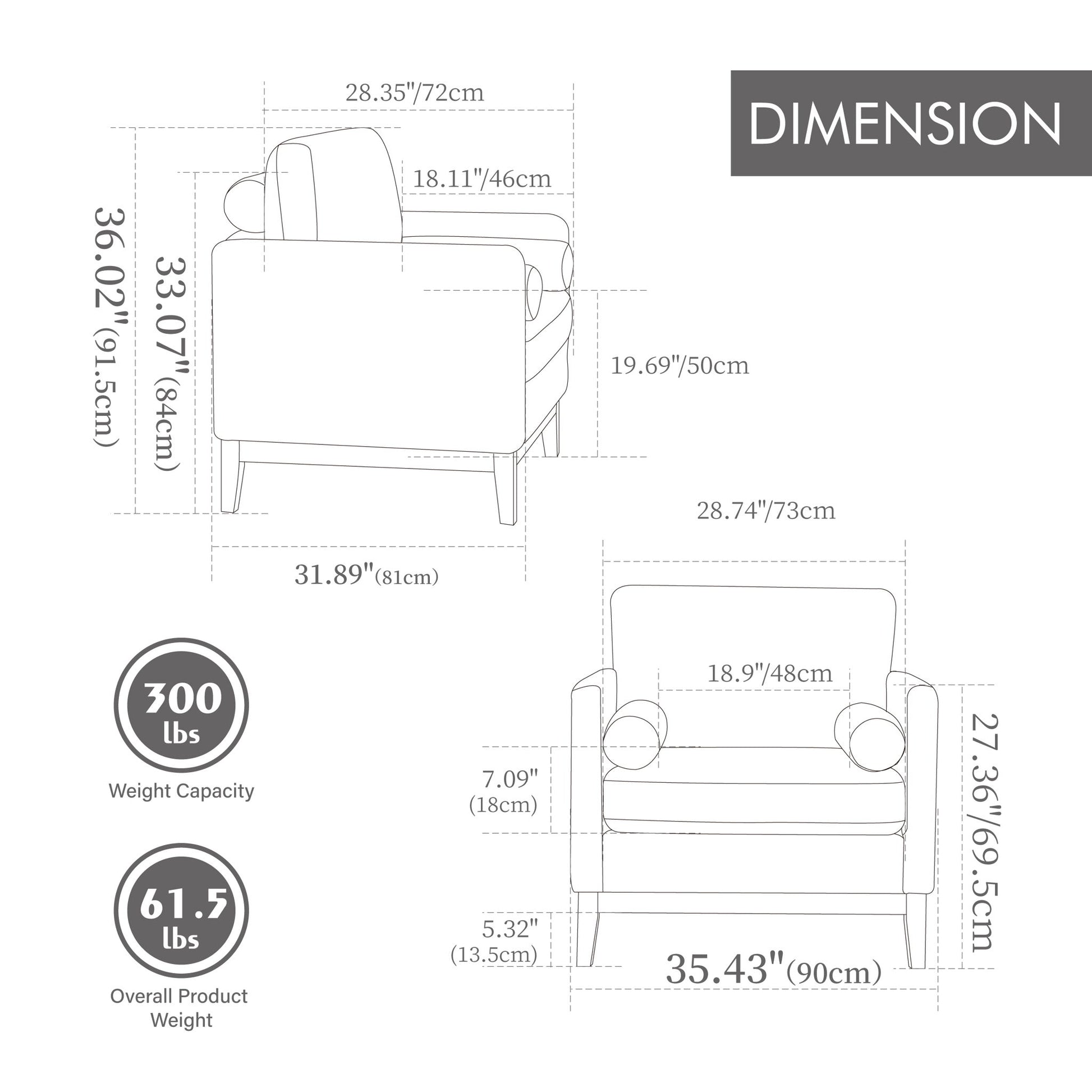 • Sturdy Construction: Solid wood and manufactured wood frame supports up to 300lbs, featuring durable rubberwood legs with natural grain finish.