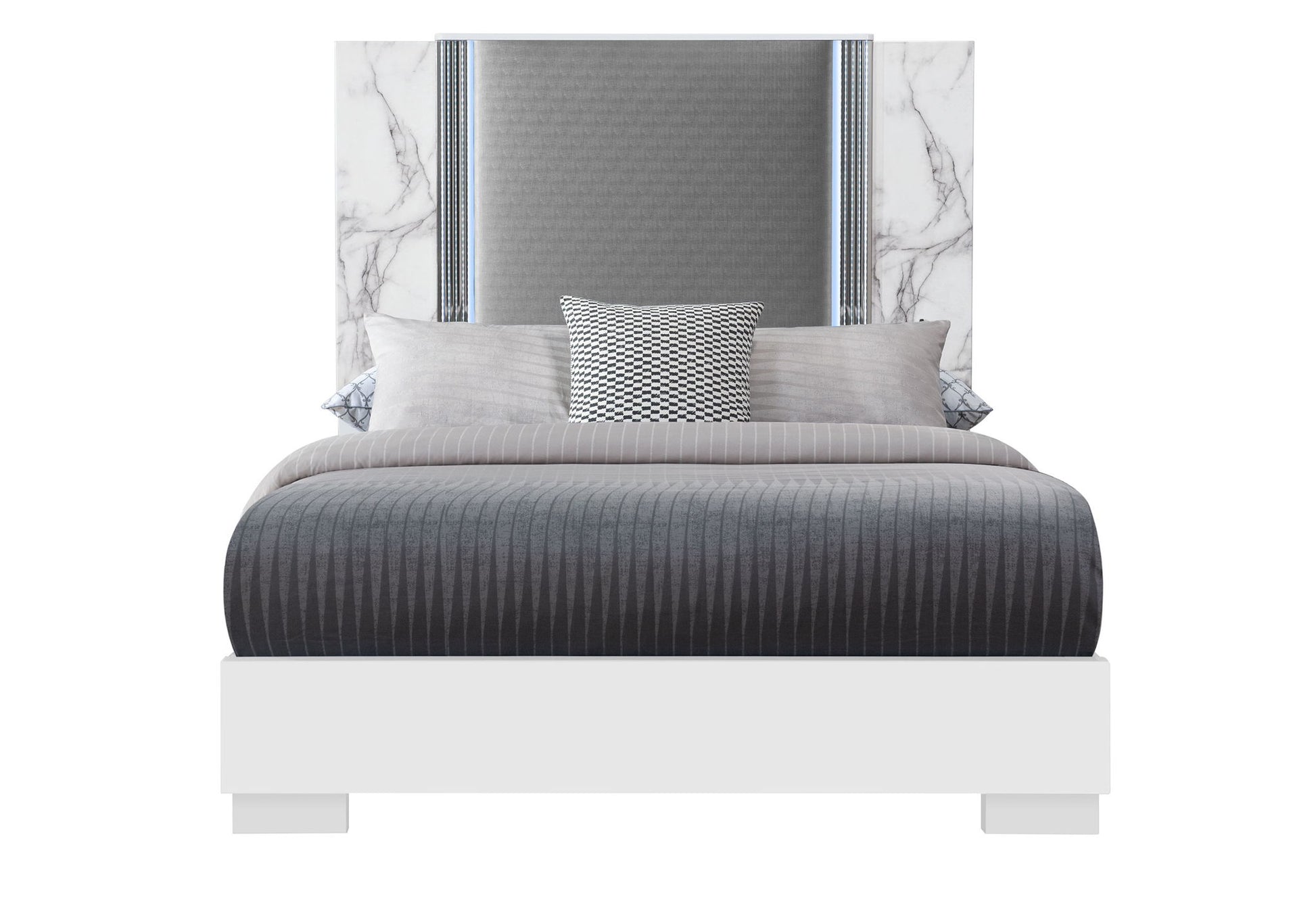 Ylime - Queen Bed With LED - White Marble