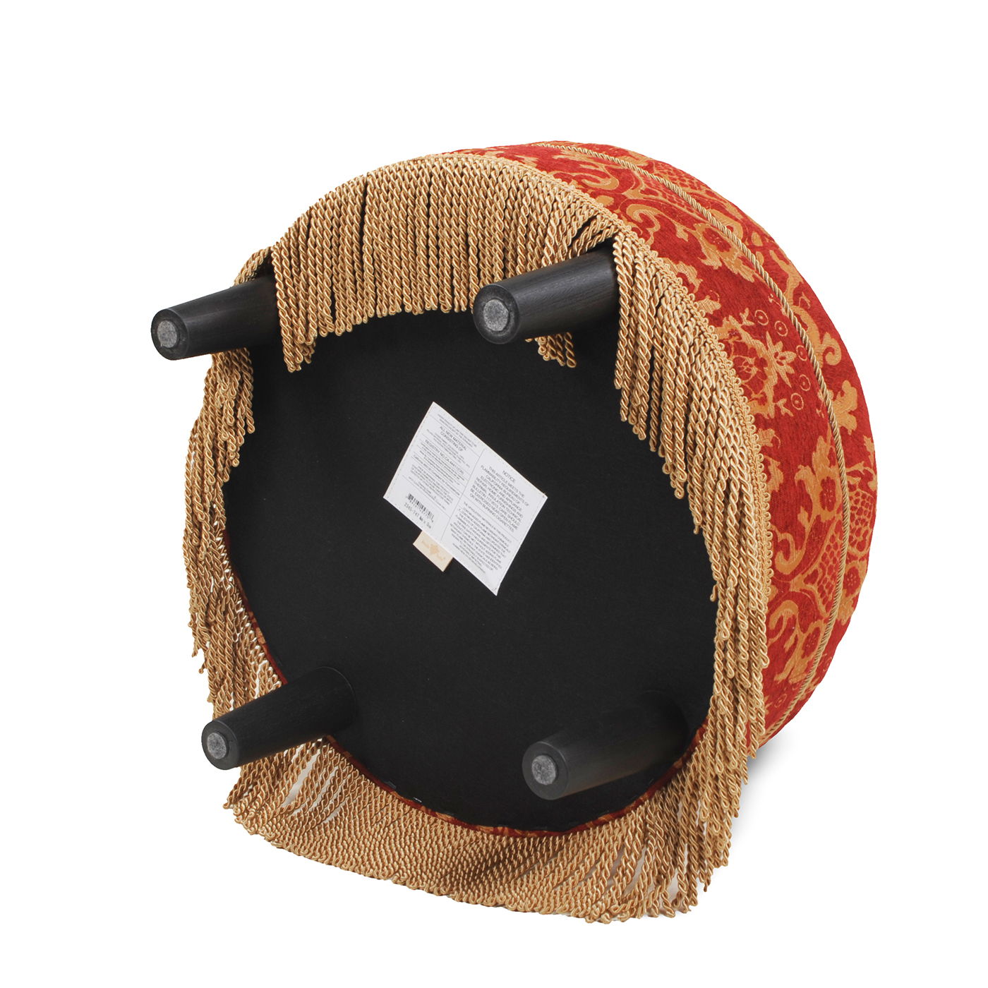 Yolanda - Round Upholstered Accent Ottoman - Red Gold Damask / Gold